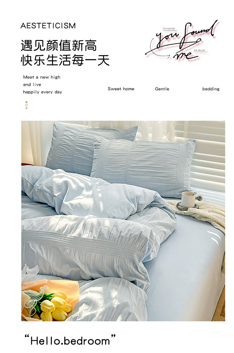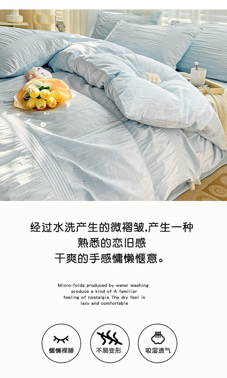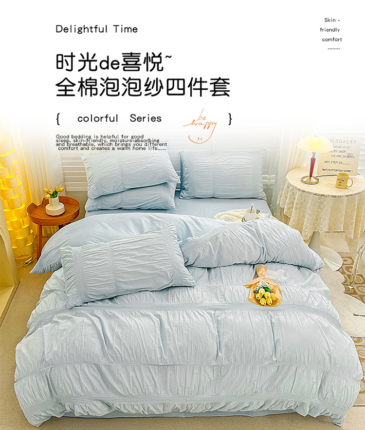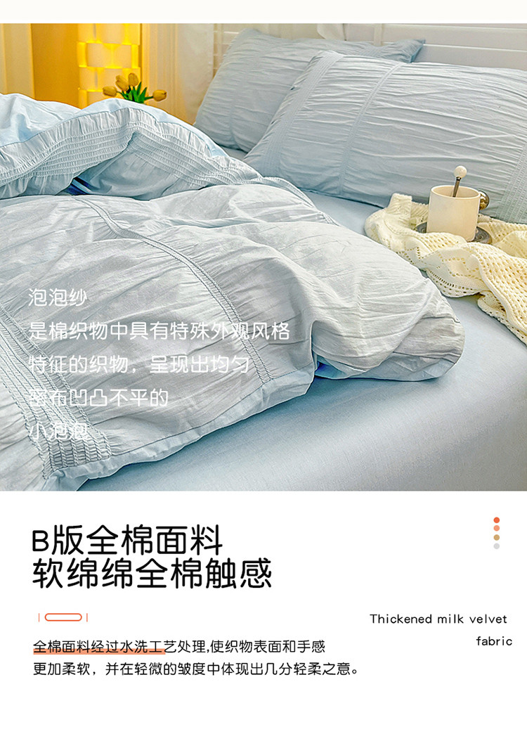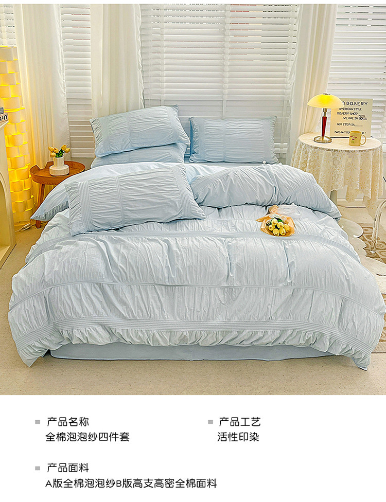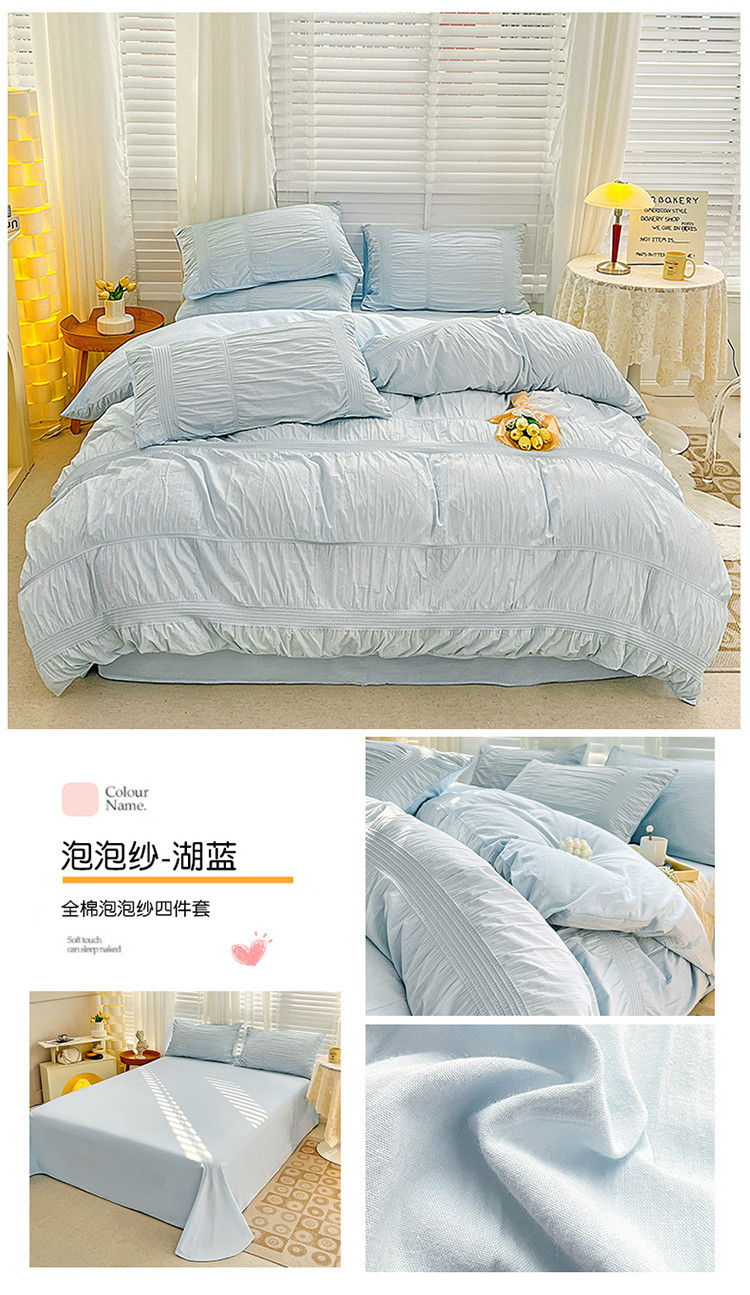 当前位置: 91家纺网 > 商品网购 > 床品套件 > 四件套 > 全棉普通四件套 > 娜娜 2022新款全棉泡泡纱四件套 泡泡纱-湖蓝