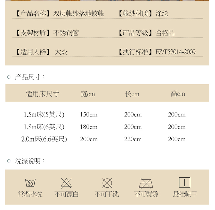 .8m(6英尺)床 单帐纱 | ¥60.00 |