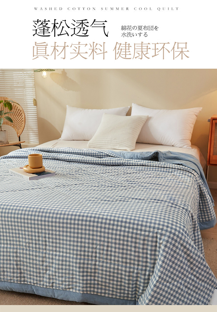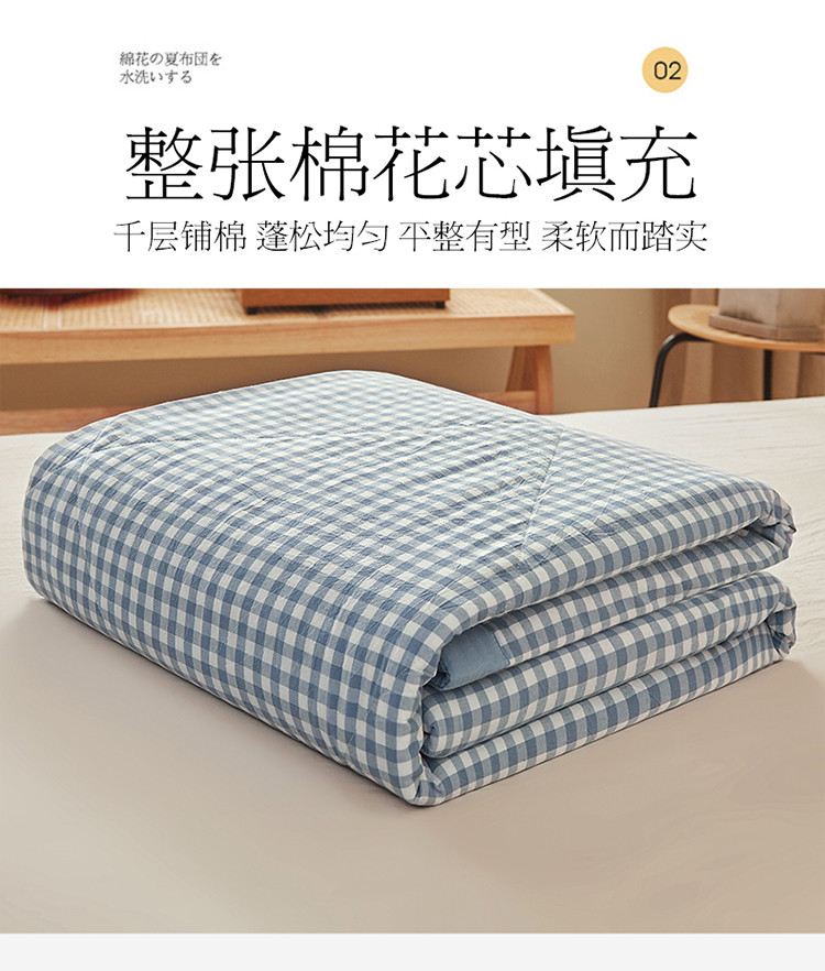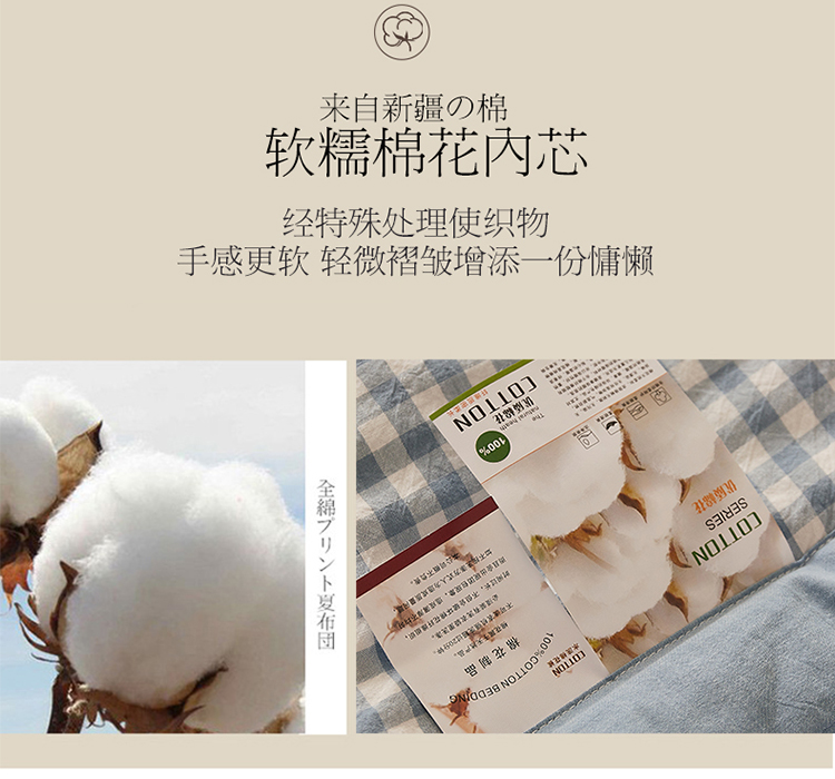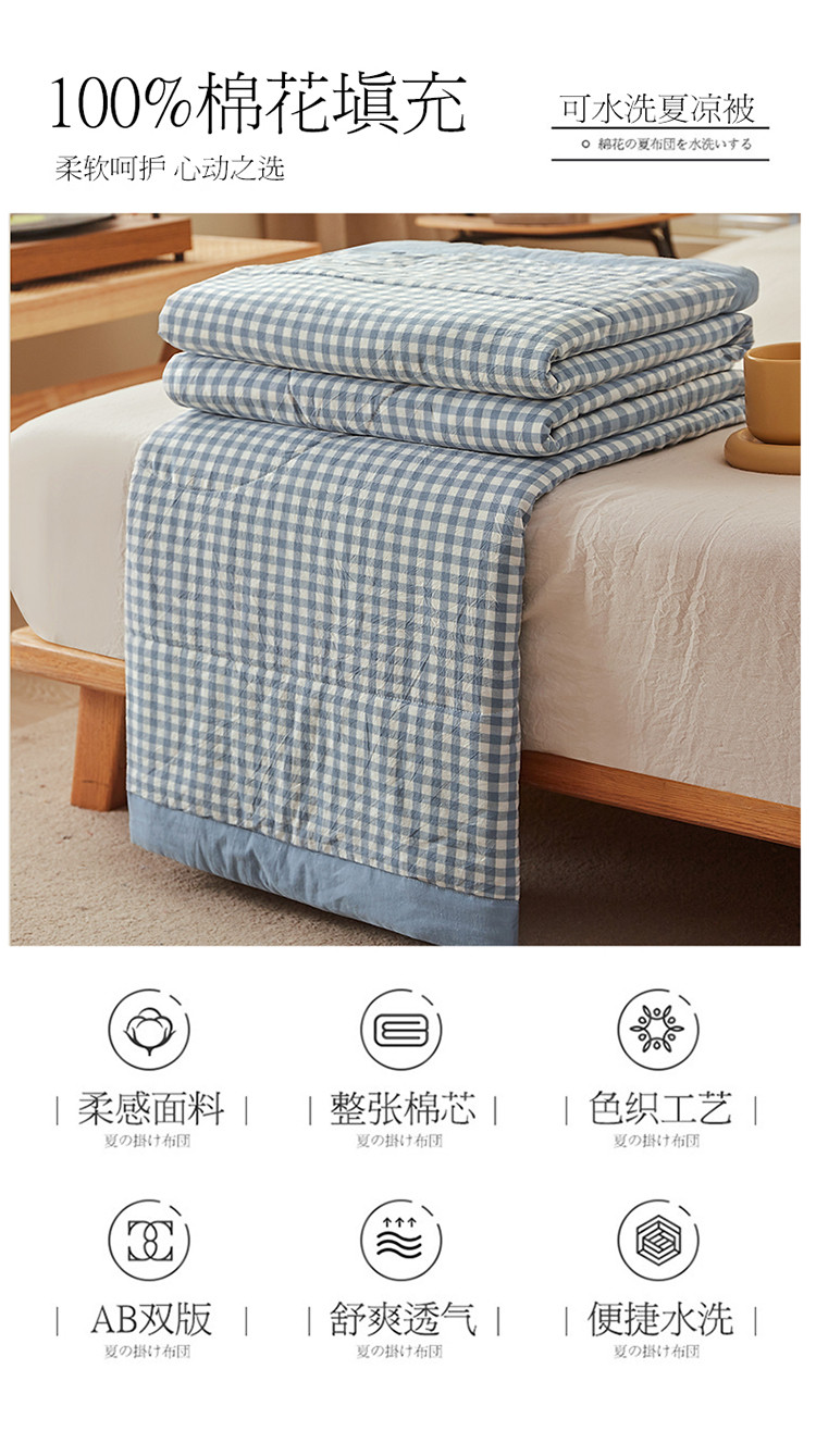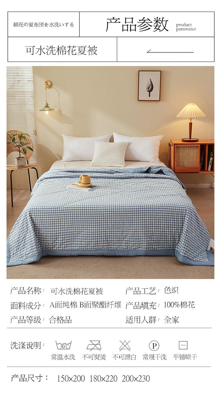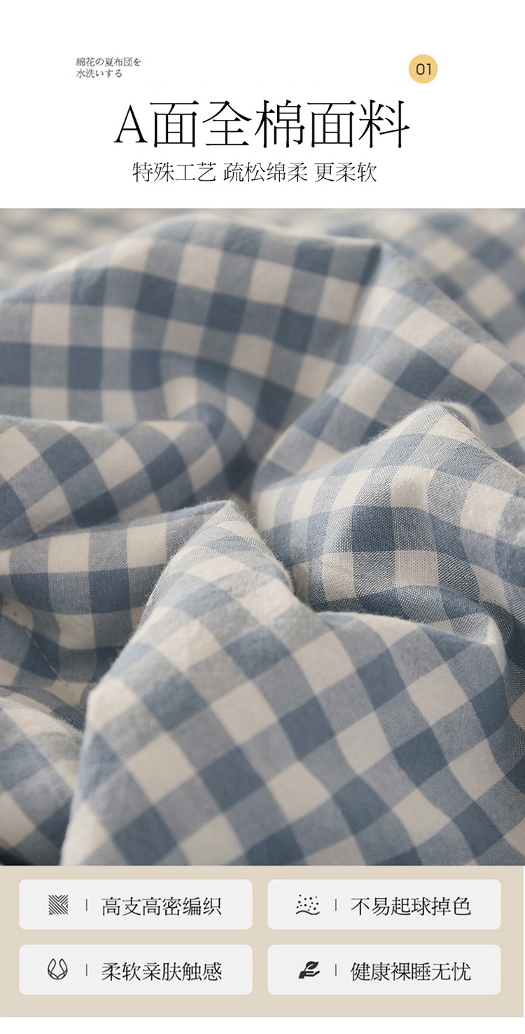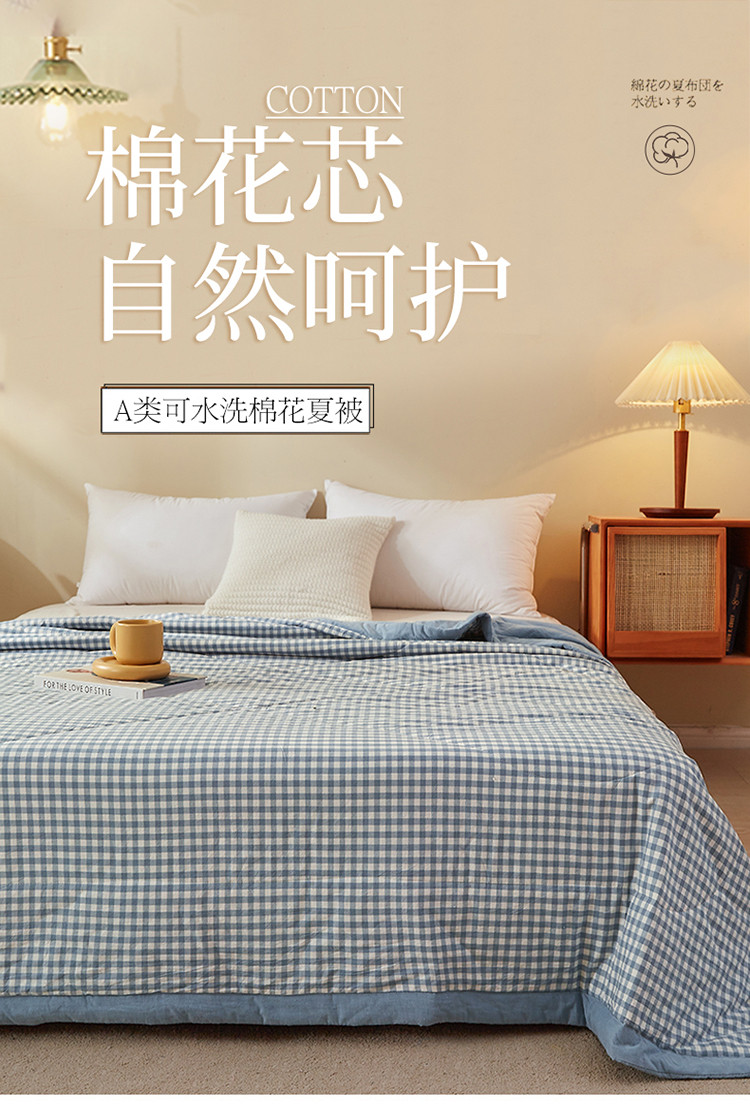商品名称:悠米悠家 2025新款新疆棉花被棉花夏被水洗棉夏凉被 浅蓝小格