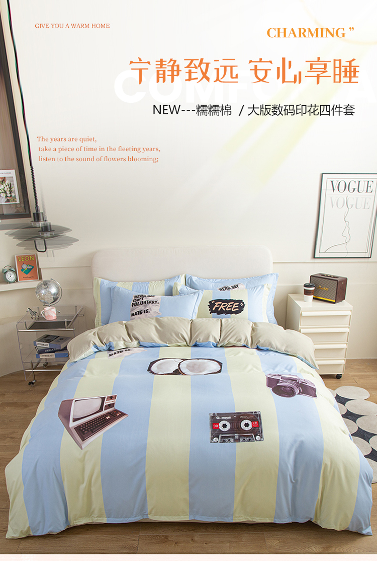 宏源2023新款大版数码印花糯糯棉四件套 文艺复兴
