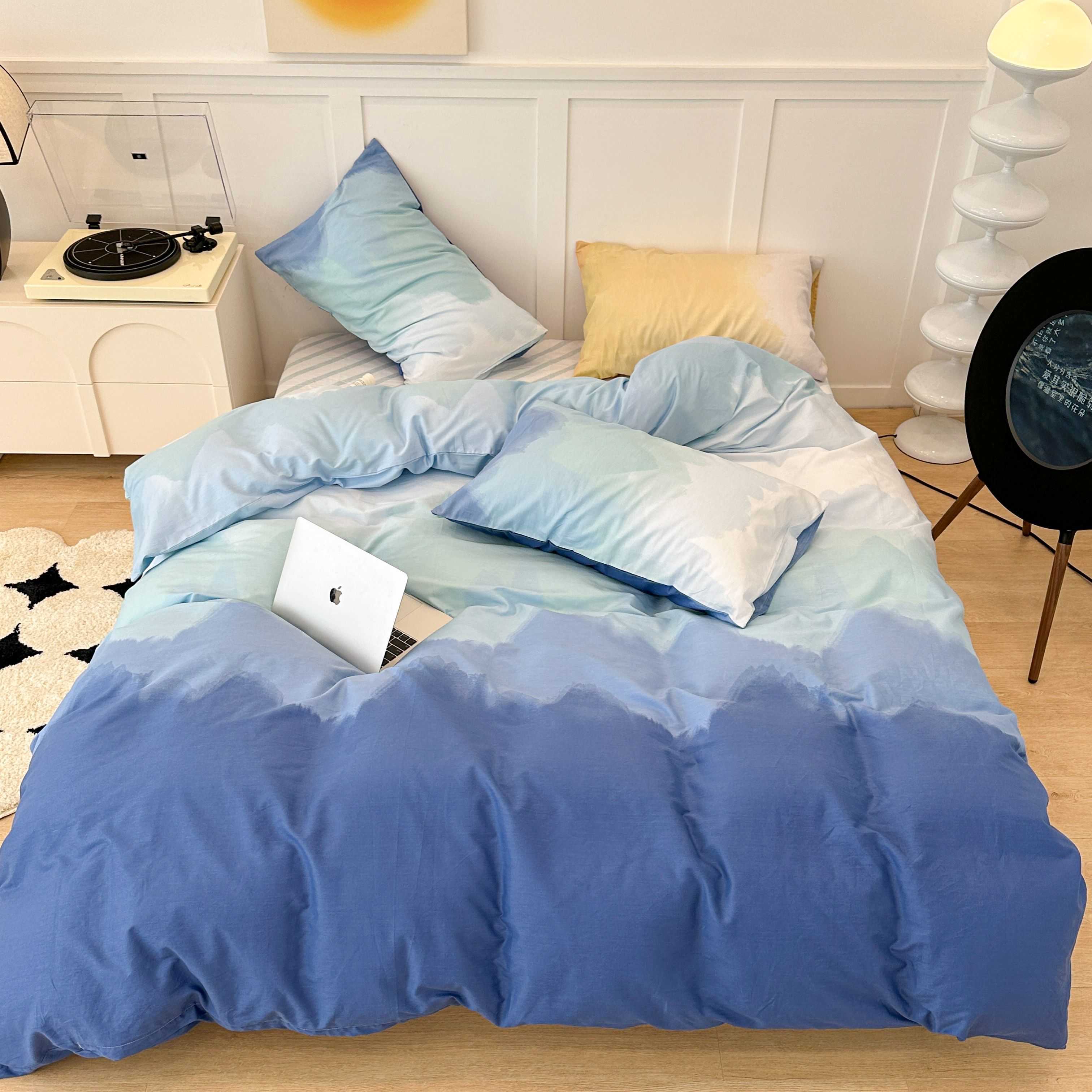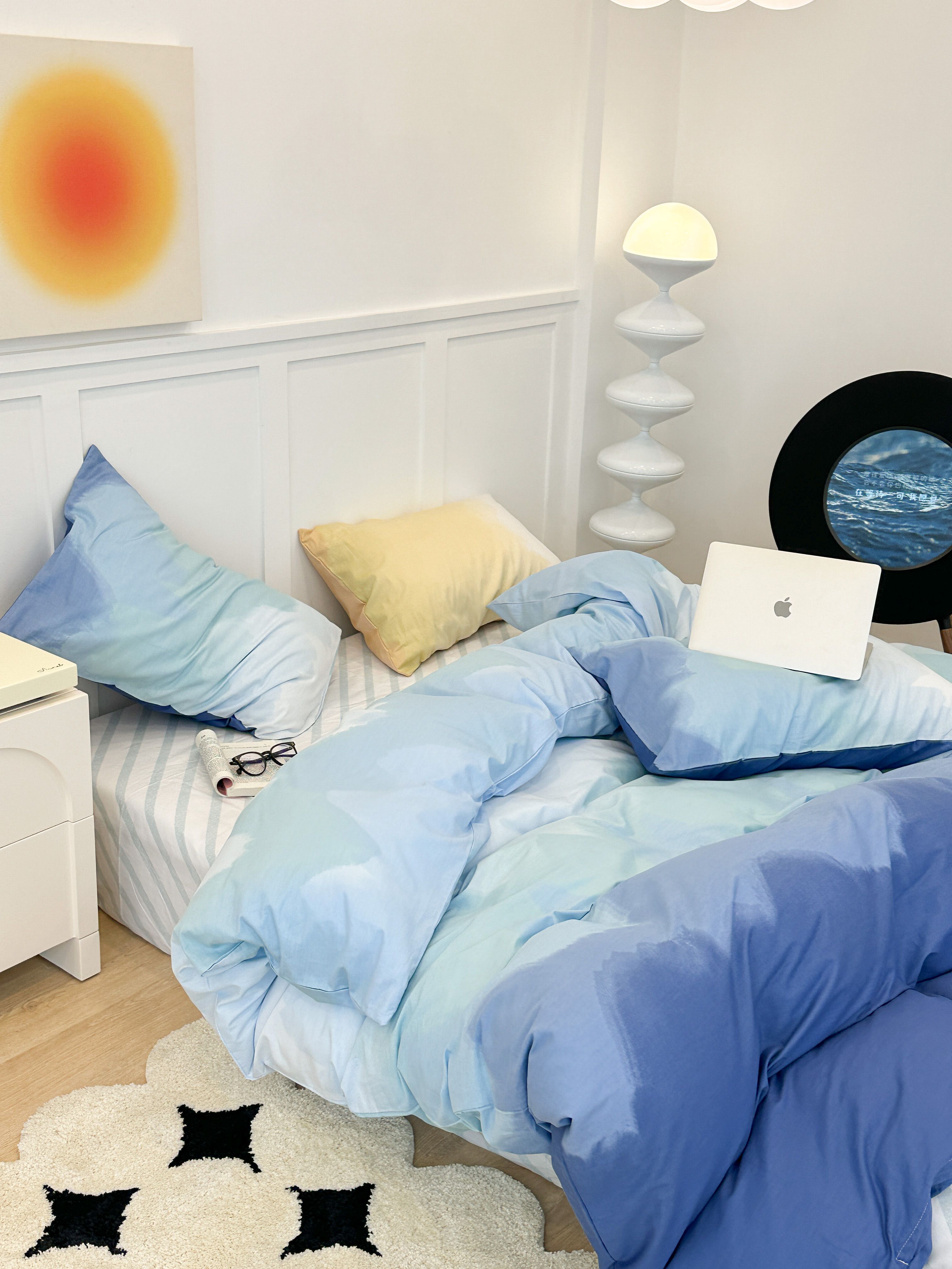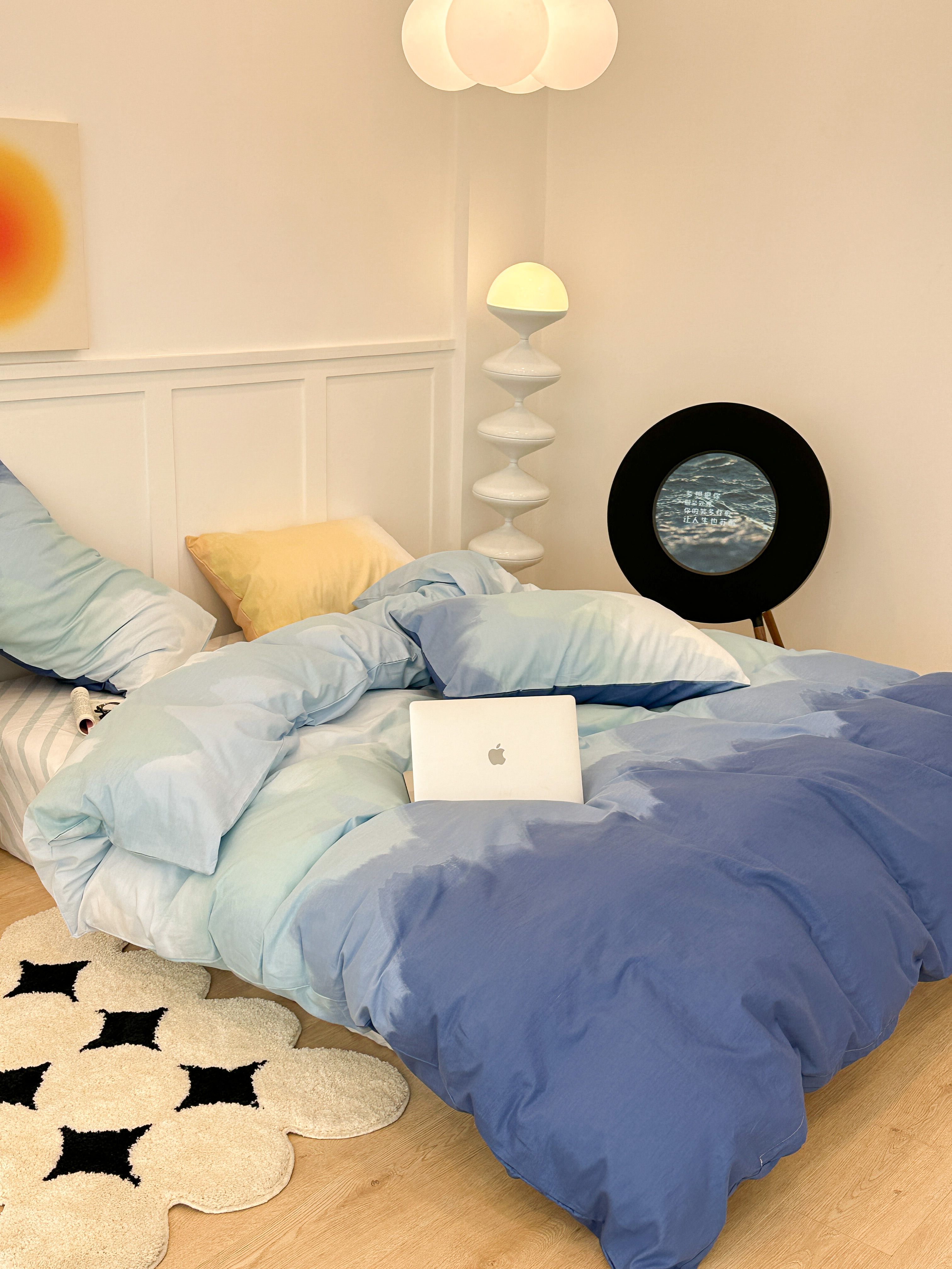昔可家纺2023新款全棉ins渐变风简约四件套 那片蓝海