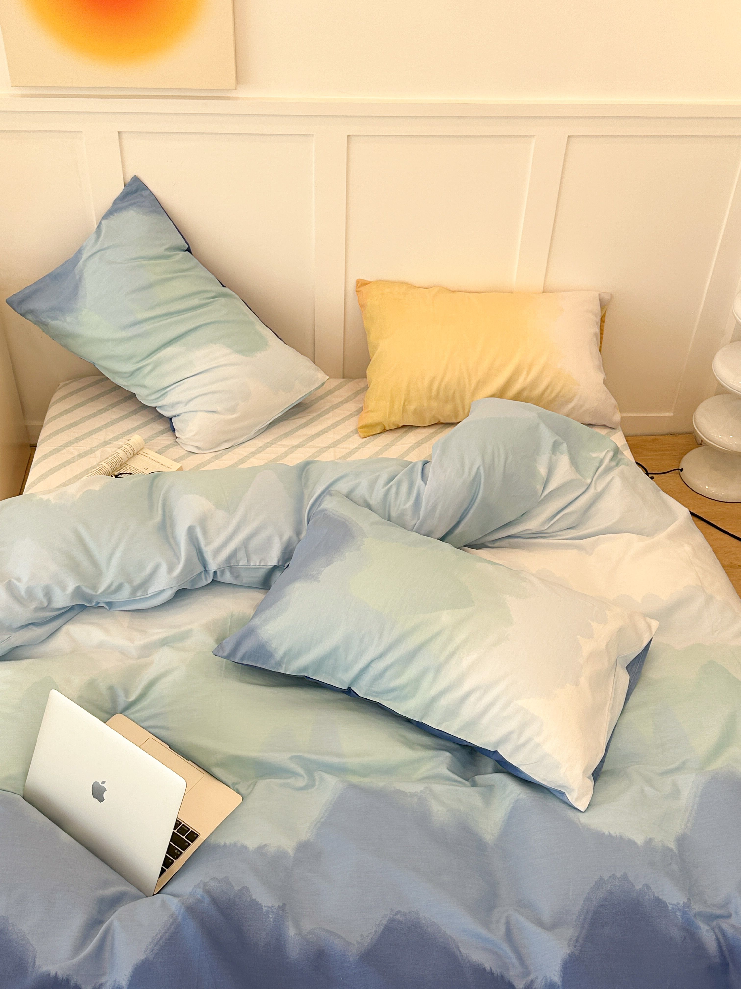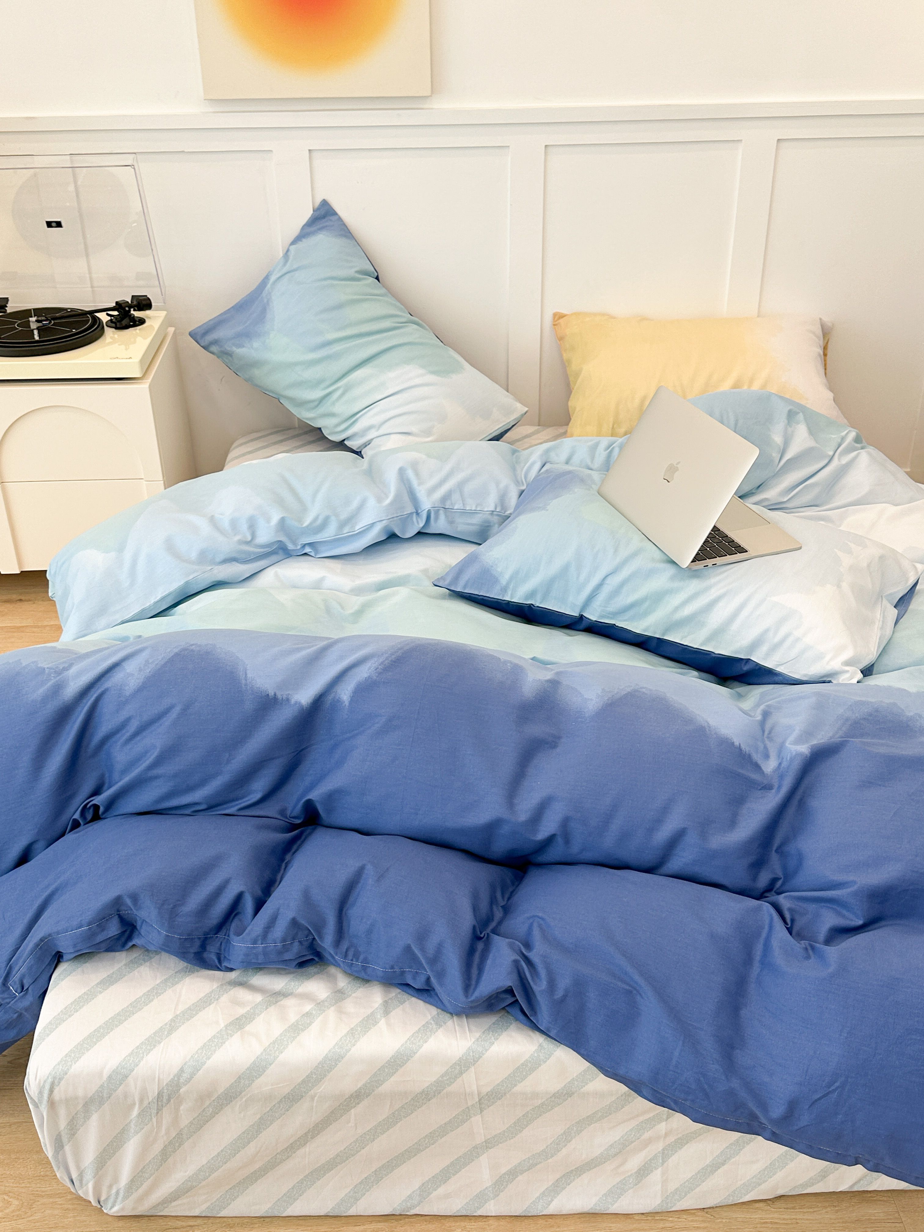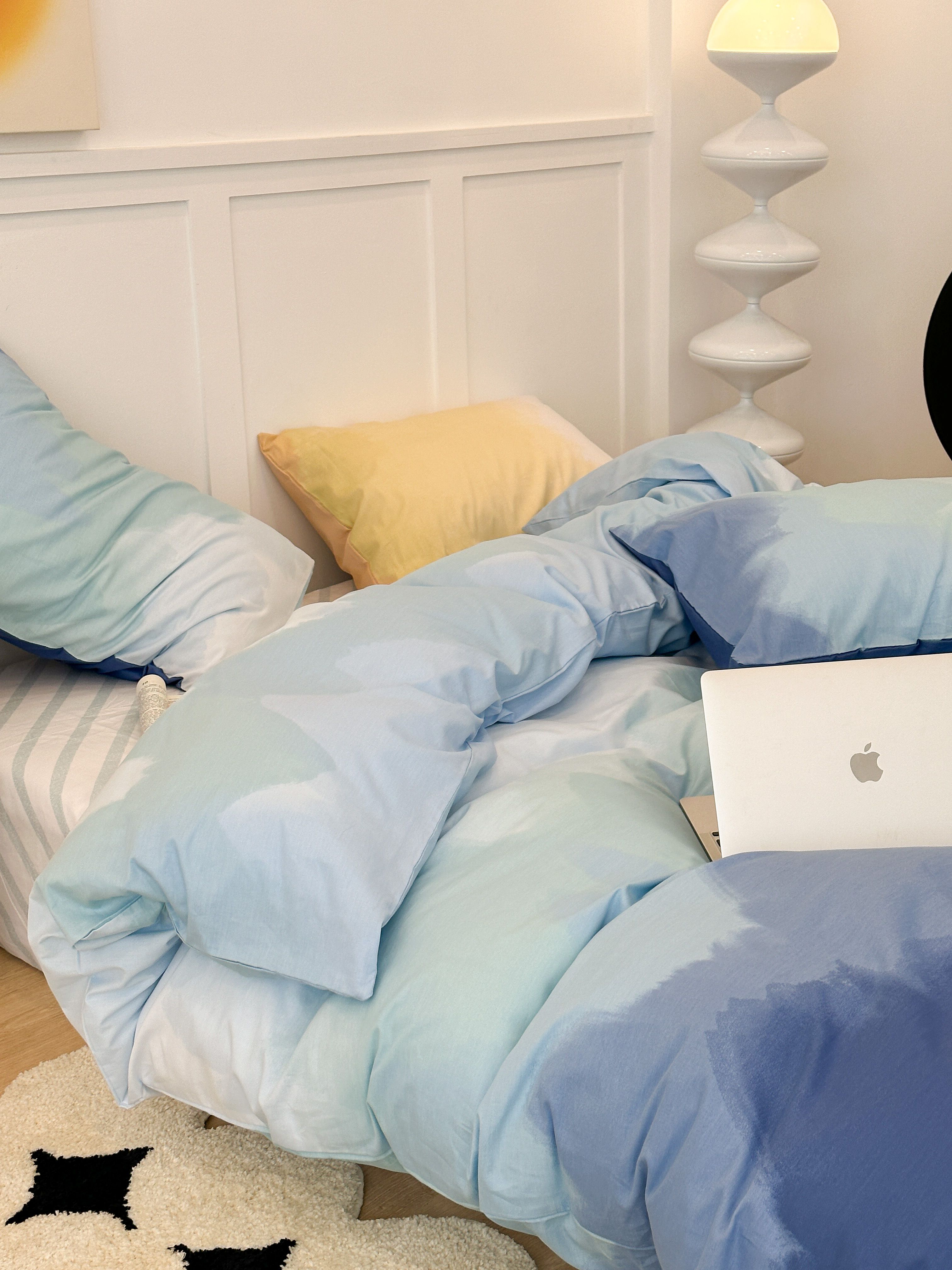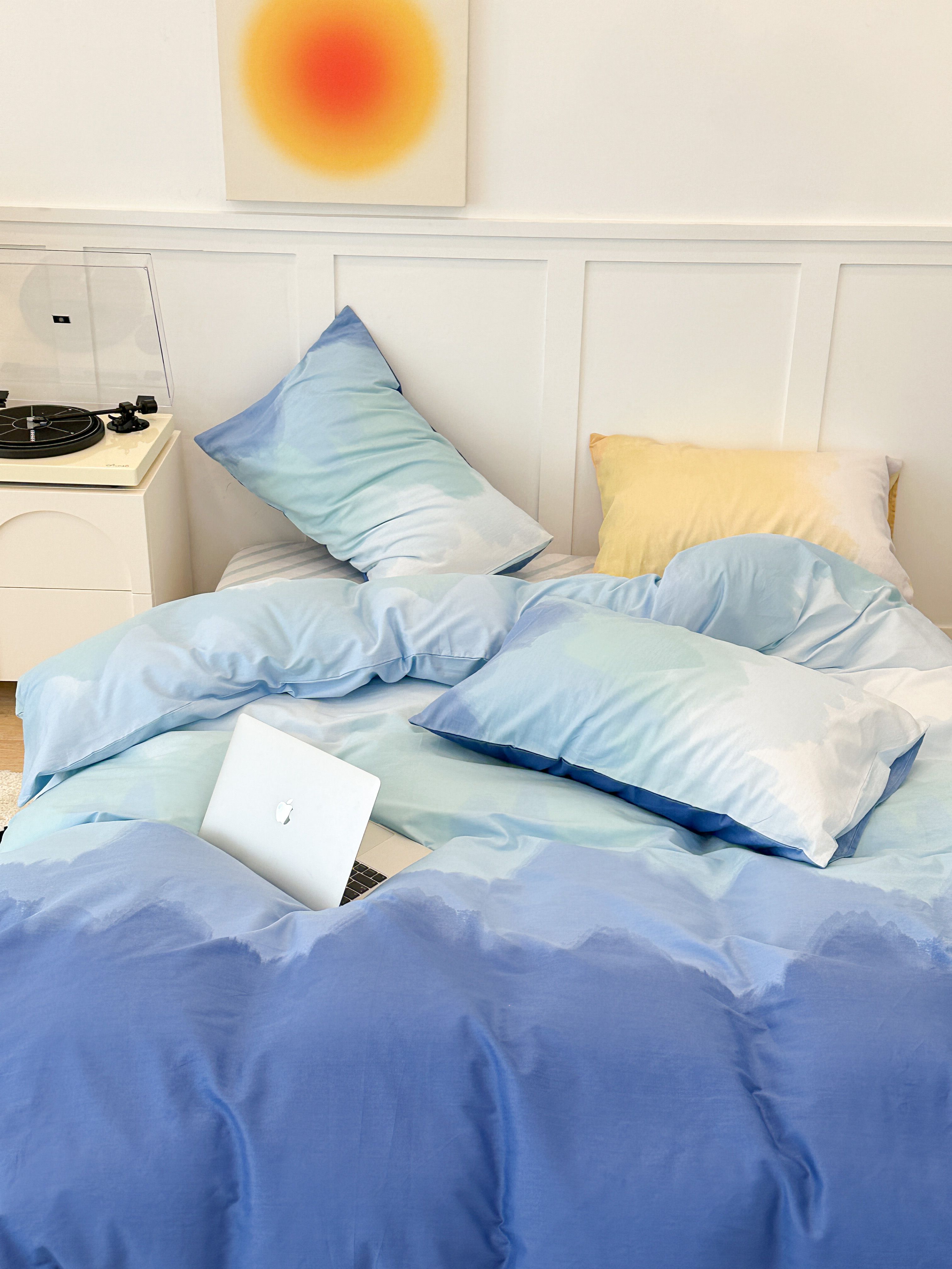 昔可家纺2023新款全棉ins渐变风简约四件套 那片蓝海