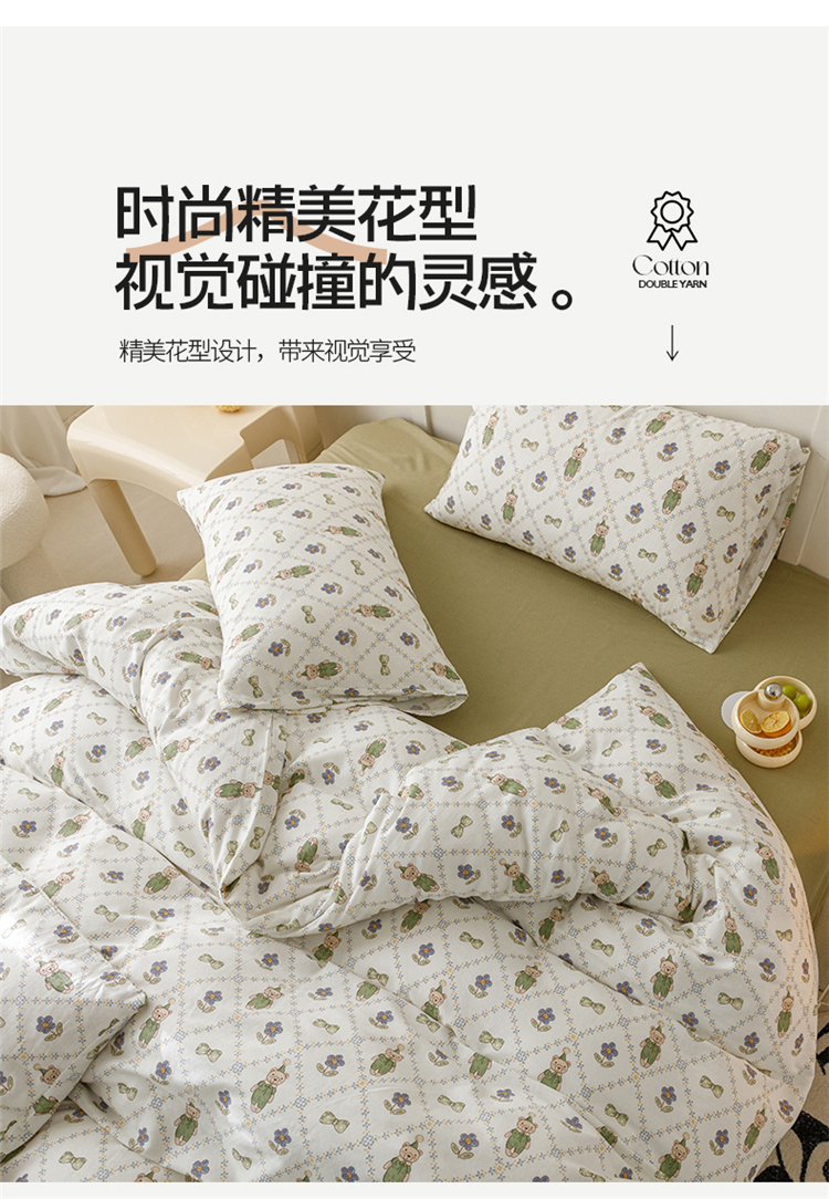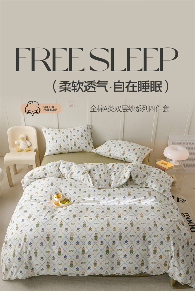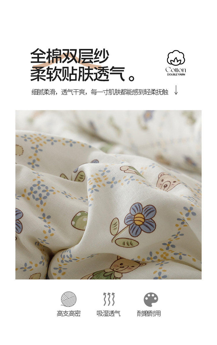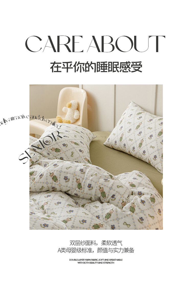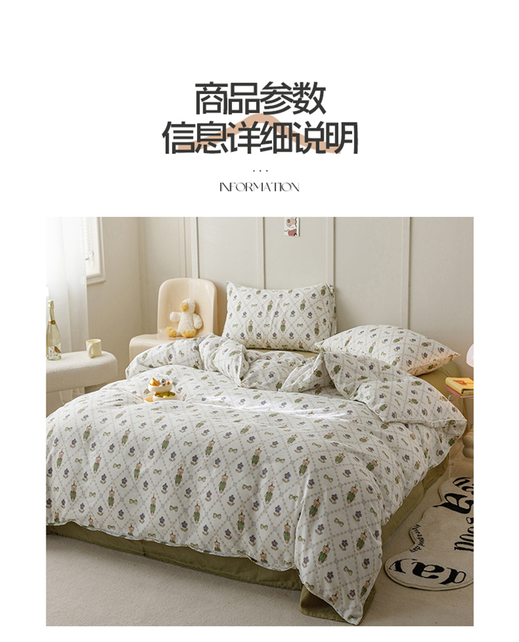 当前位置: 91家纺网 > 商品网购 > 床品套件 > 四件套 > 全棉普通四件套 > 窝米 2023新款全棉A类双层纱系列四件套 花间熊