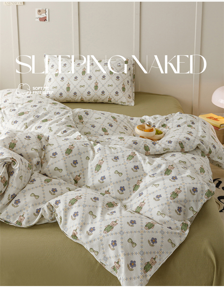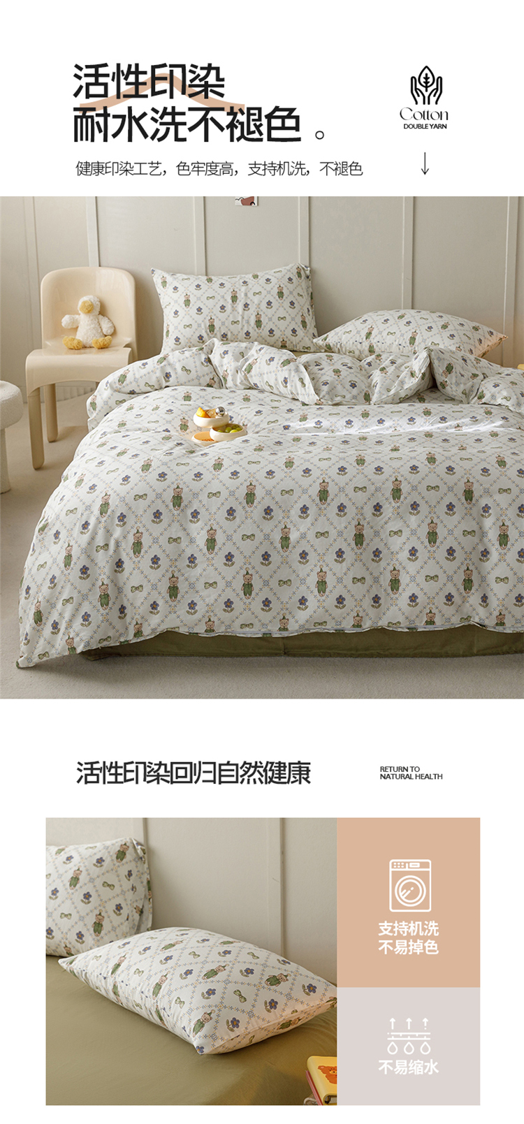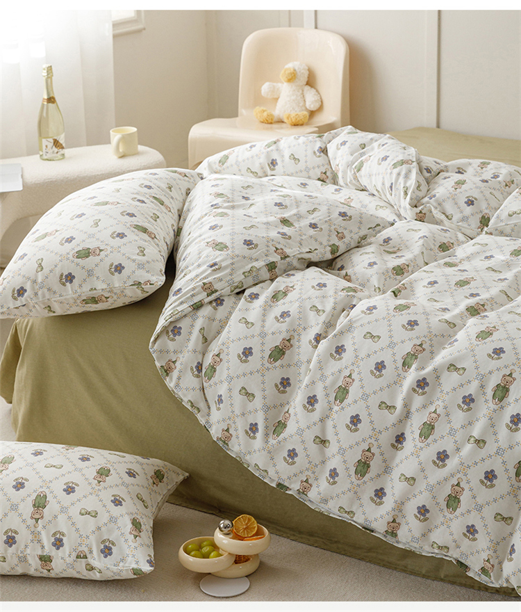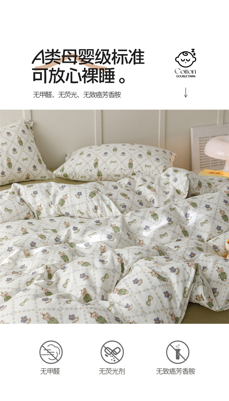 当前位置: 91家纺网 > 商品网购 > 床品套件 > 四件套 > 全棉普通四件套 > 窝米 2023新款全棉A类双层纱系列四件套 花间熊