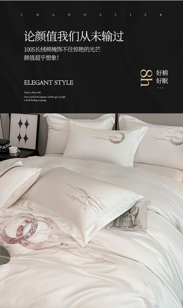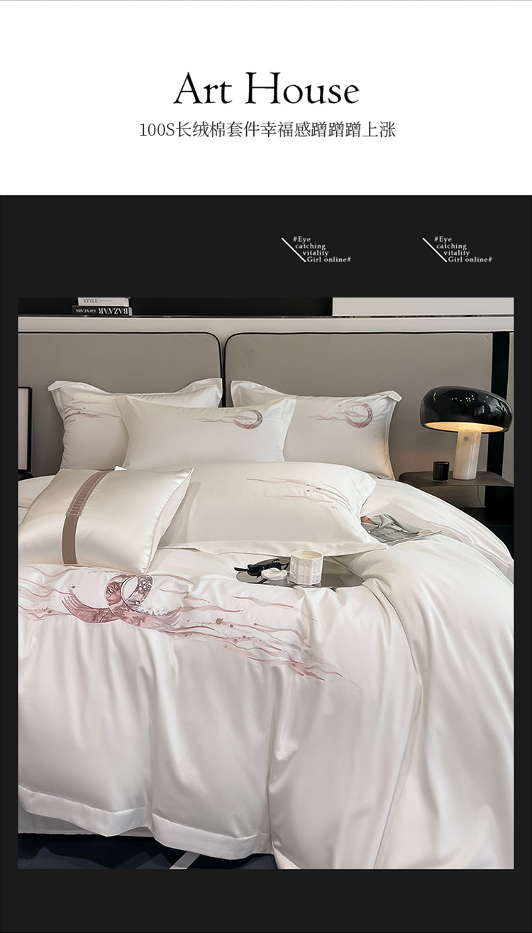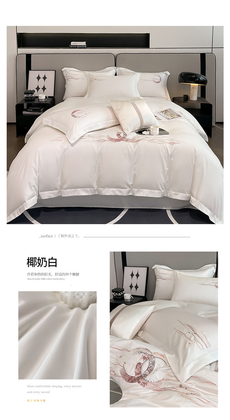 魅都100阿克苏长绒棉刺绣四件套-米娅系列 米娅-椰奶白