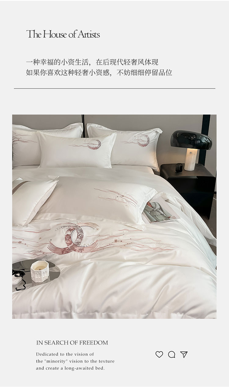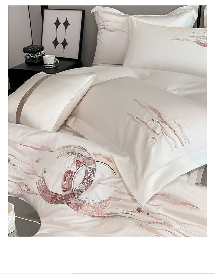 (总)魅都 2025新款100S全棉刺绣款四件套-心恋,米白,飘蓝,浅紫,松绿