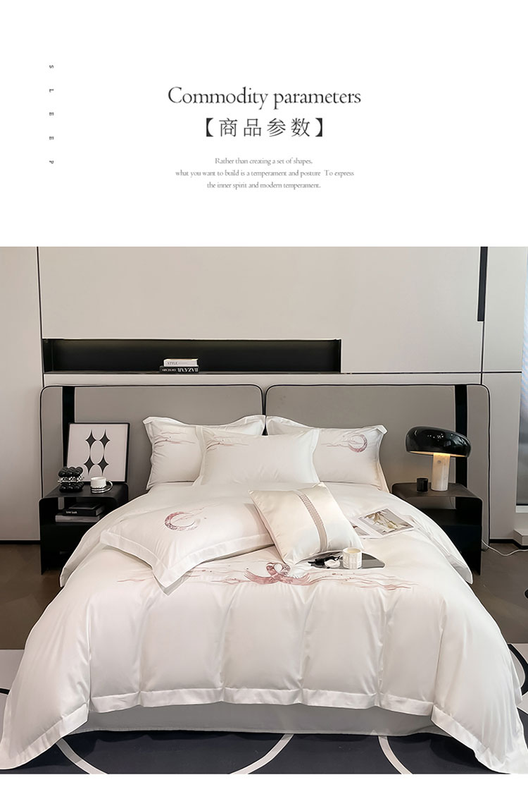 (总)魅都 2025新款100s长绒棉简约织带轻奢风四件套-罗伊,爱马橙,亮粉,浅灰,香槟金,香芋紫