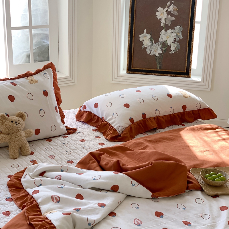 星期八2023款水洗棉麻床盖+枕套+夏被 草莓熊