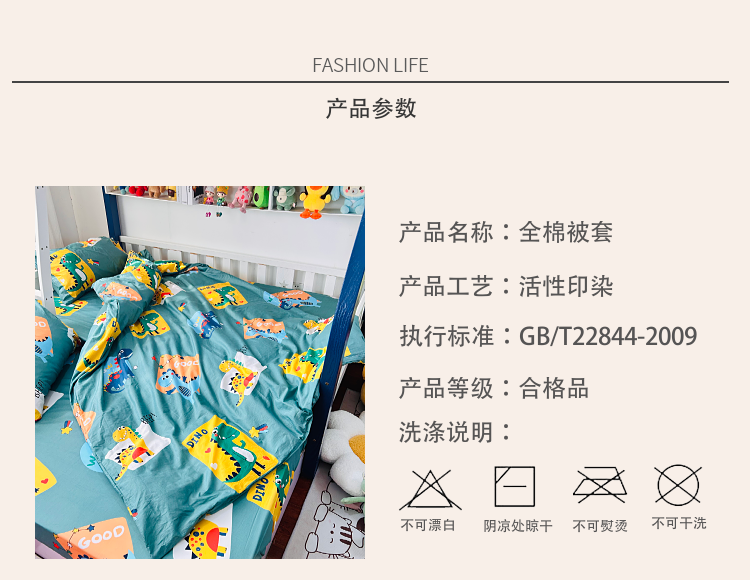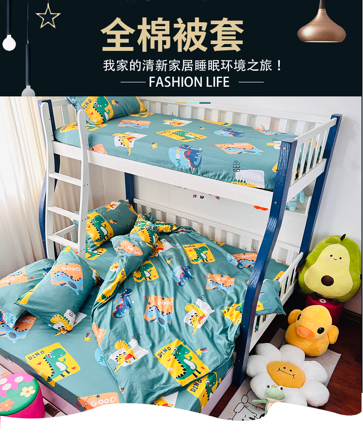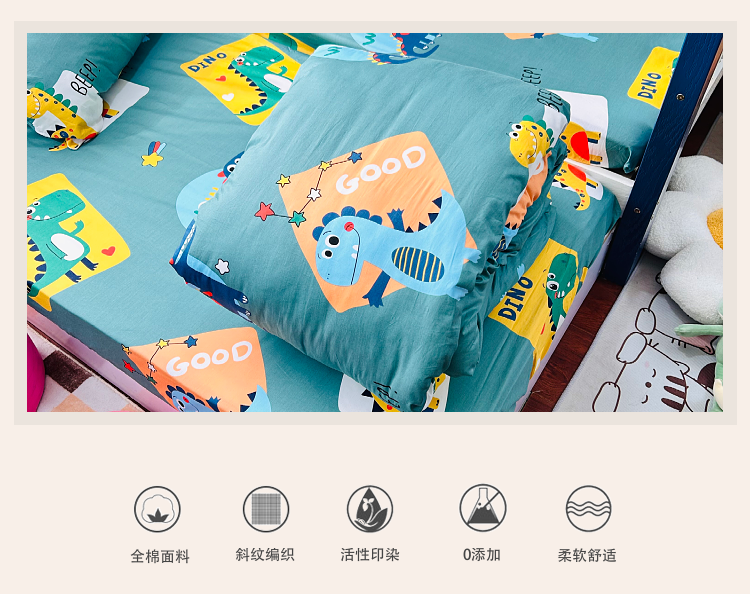 商品名称:小虾米 2023新款卡通系列全棉被套 恐龙家族绿