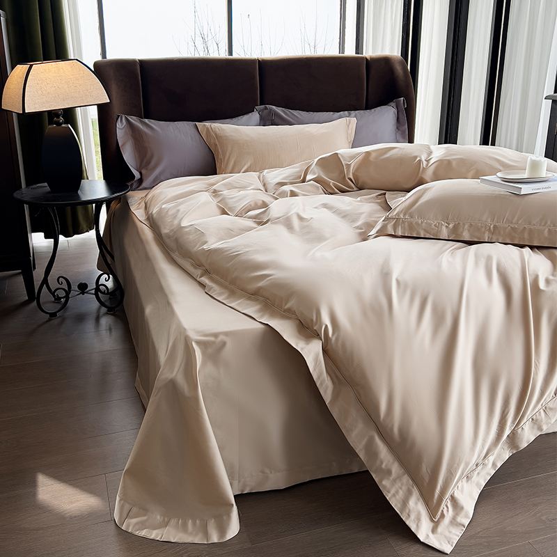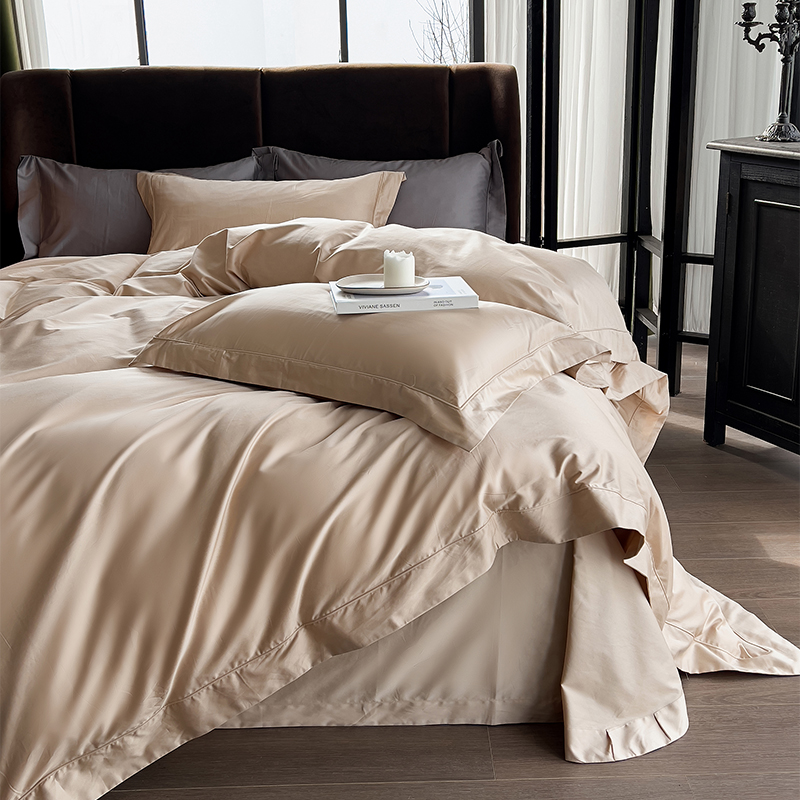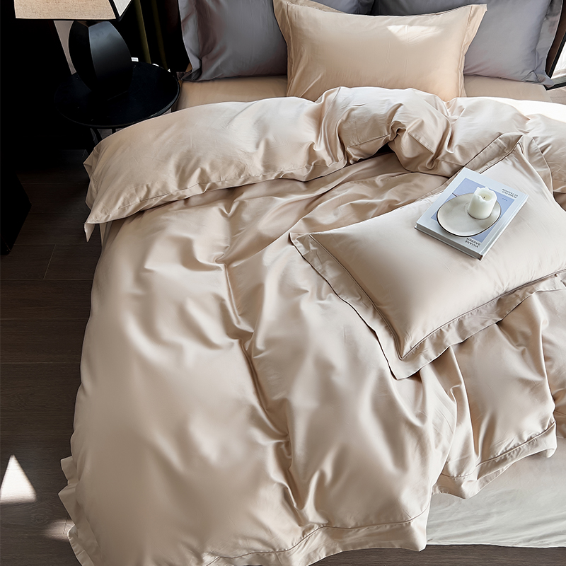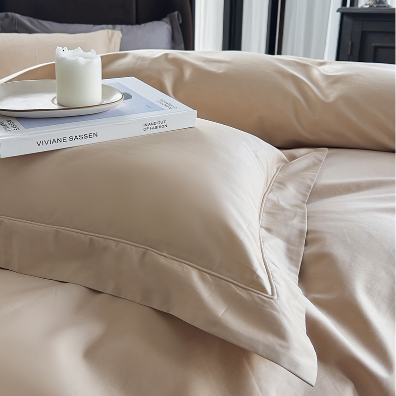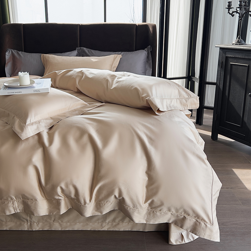 嘉悦 新款50*50S双股长绒棉简约纯色埋绳四件套邂逅-实拍 邂逅-香槟色