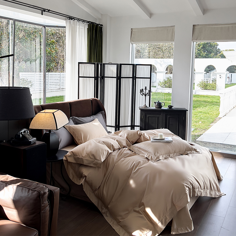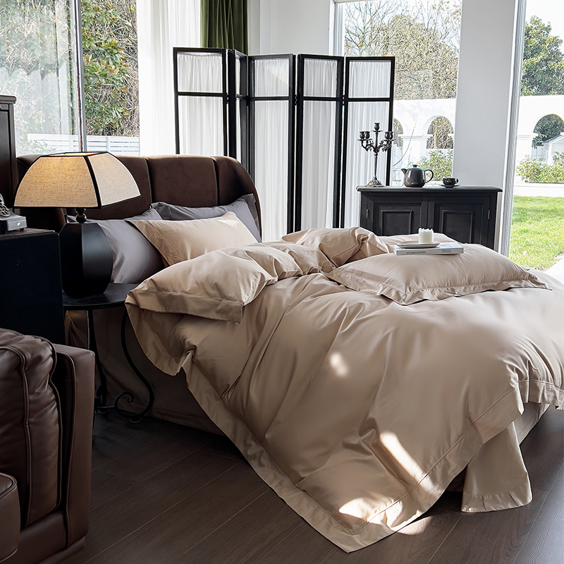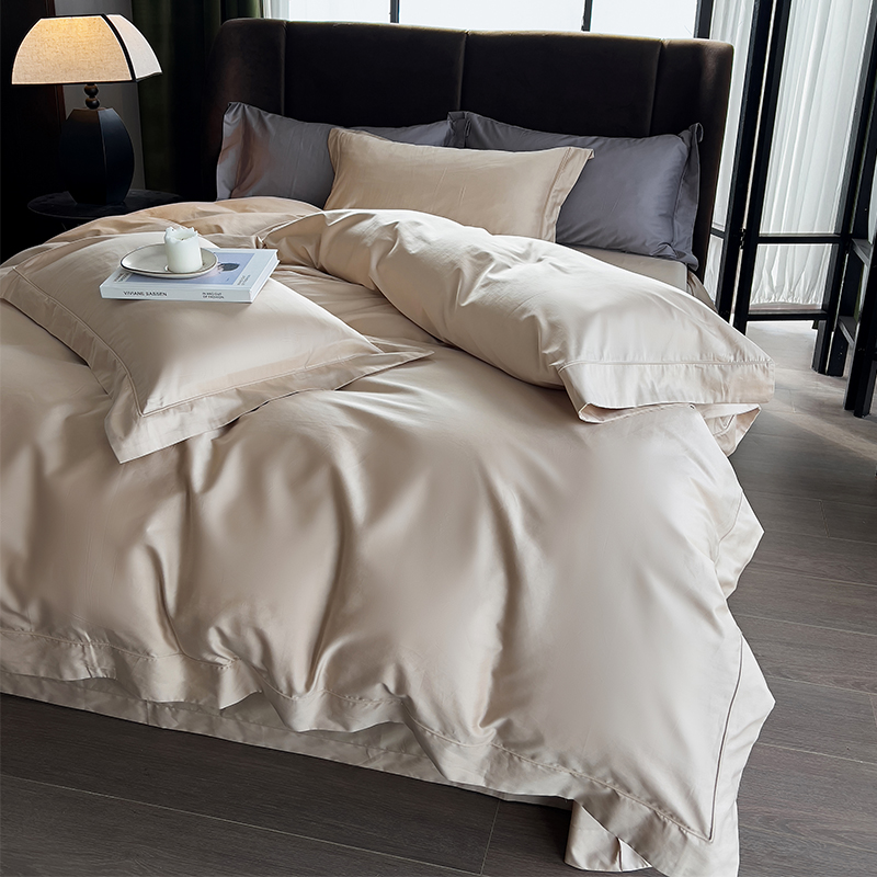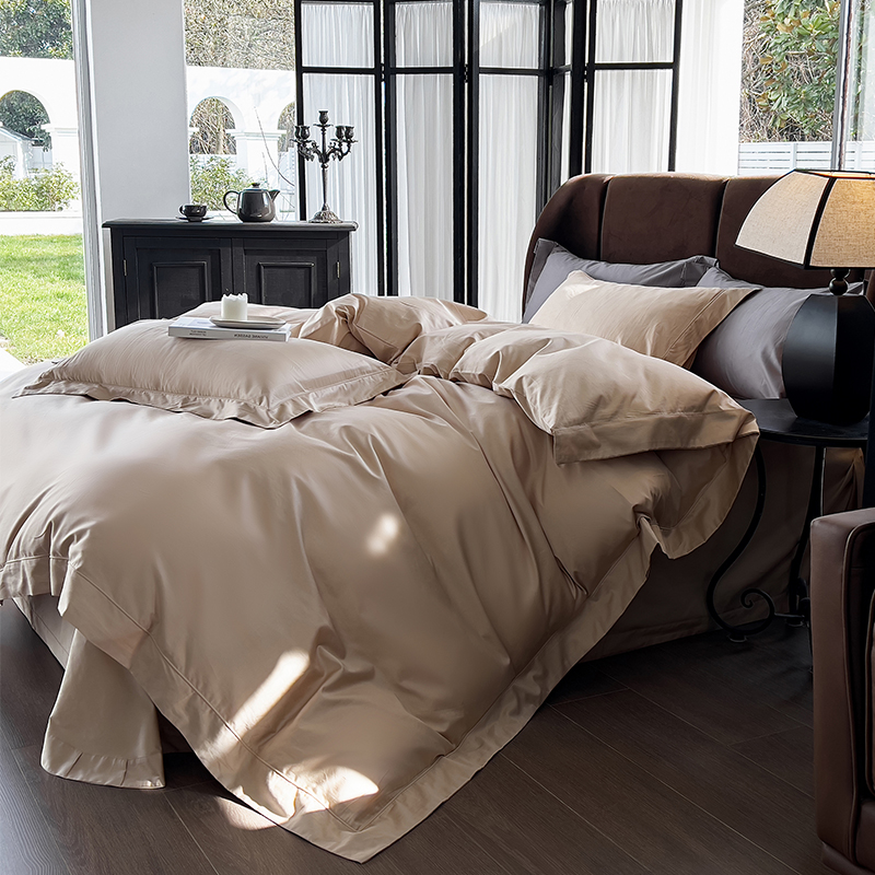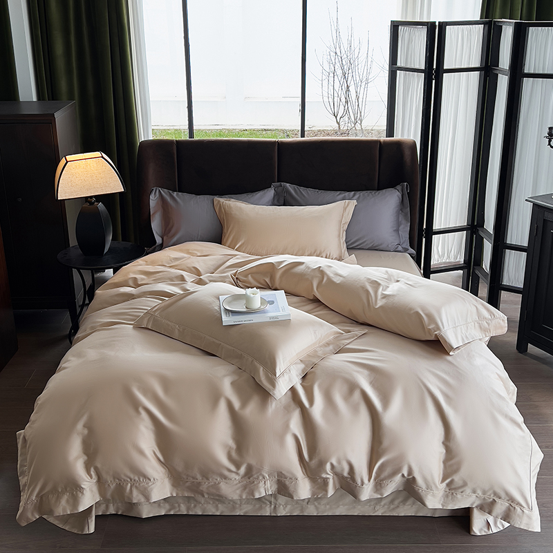 嘉悦 新款50*50S双股长绒棉简约纯色埋绳四件套邂逅-实拍 邂逅-香槟色