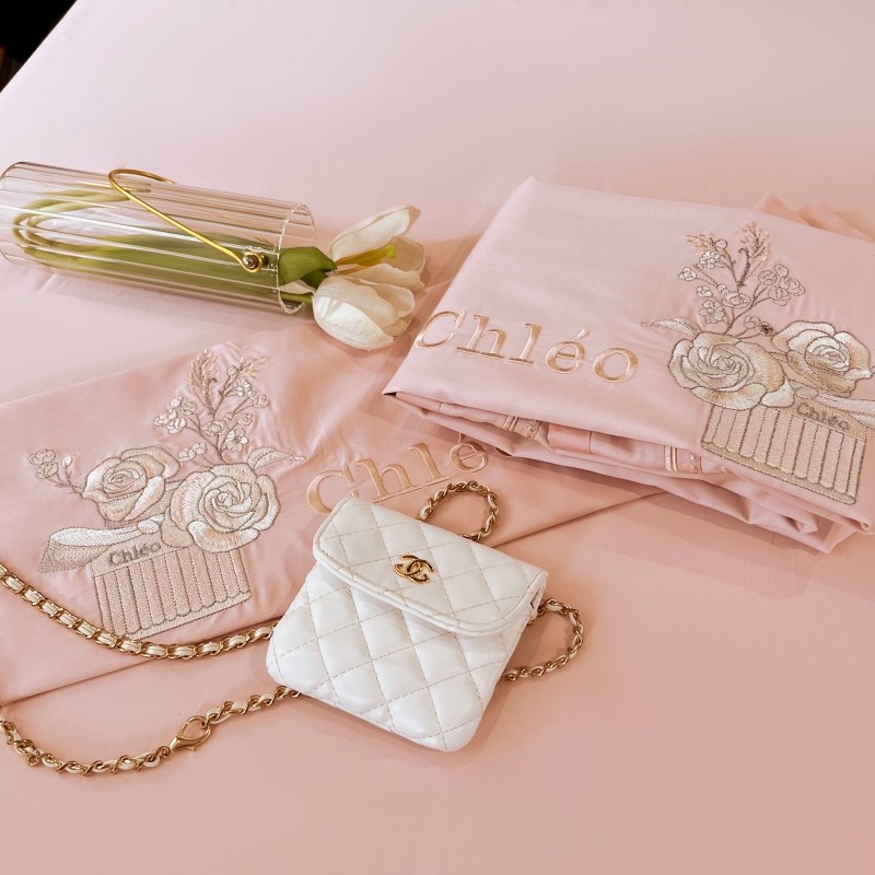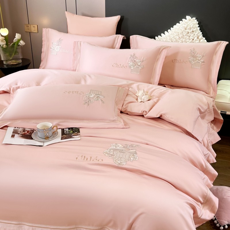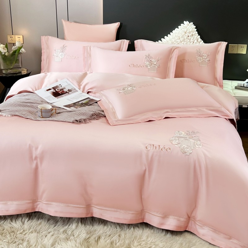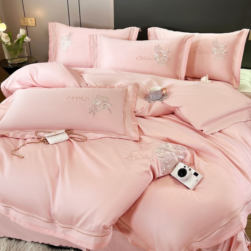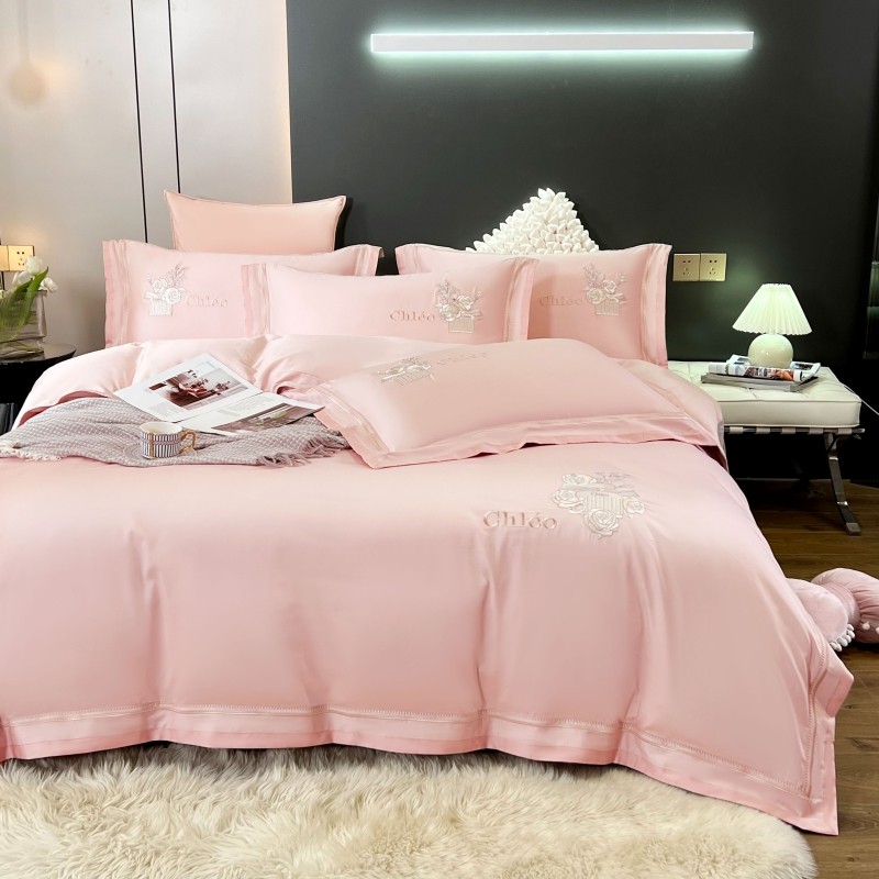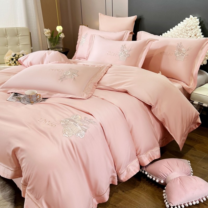 星尚家纺 2023新款100支长绒棉绣花四件套-锦湘 锦湘-樱花粉