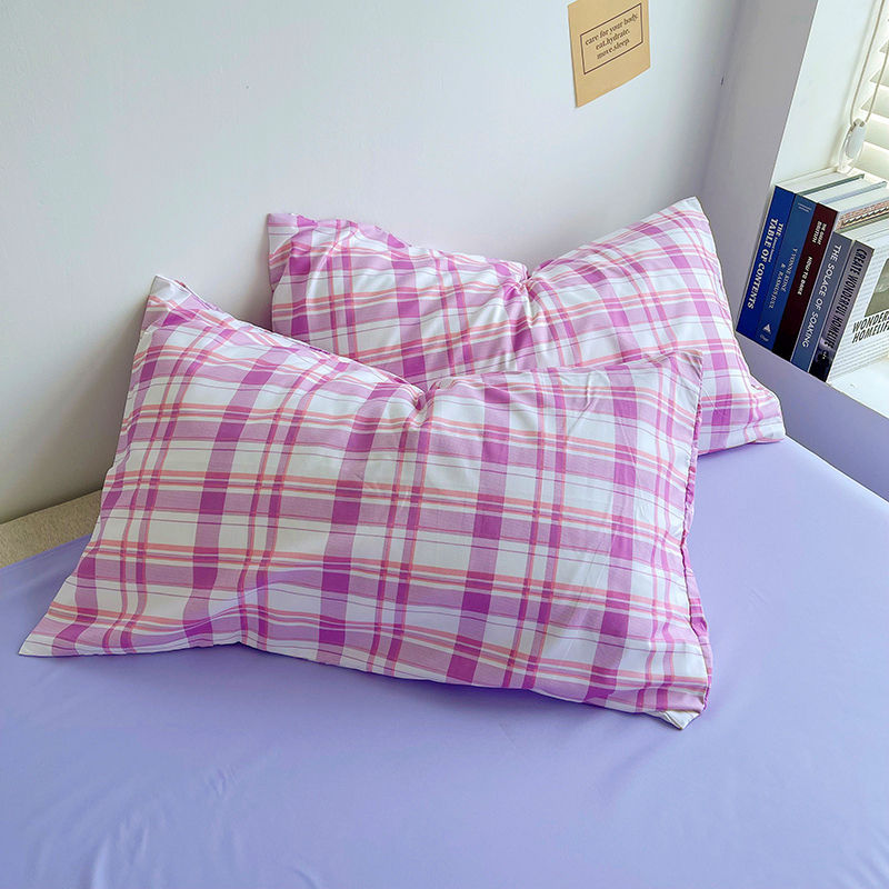 曼璐单人枕套加厚水洗棉日式无印风格子条纹枕芯套48*74cm 葡萄格