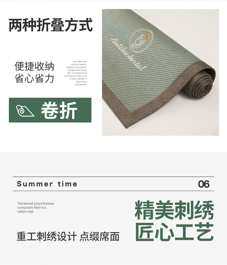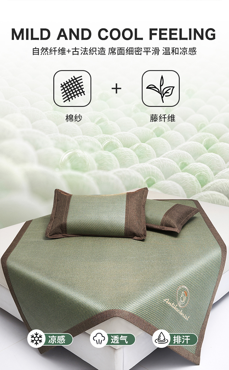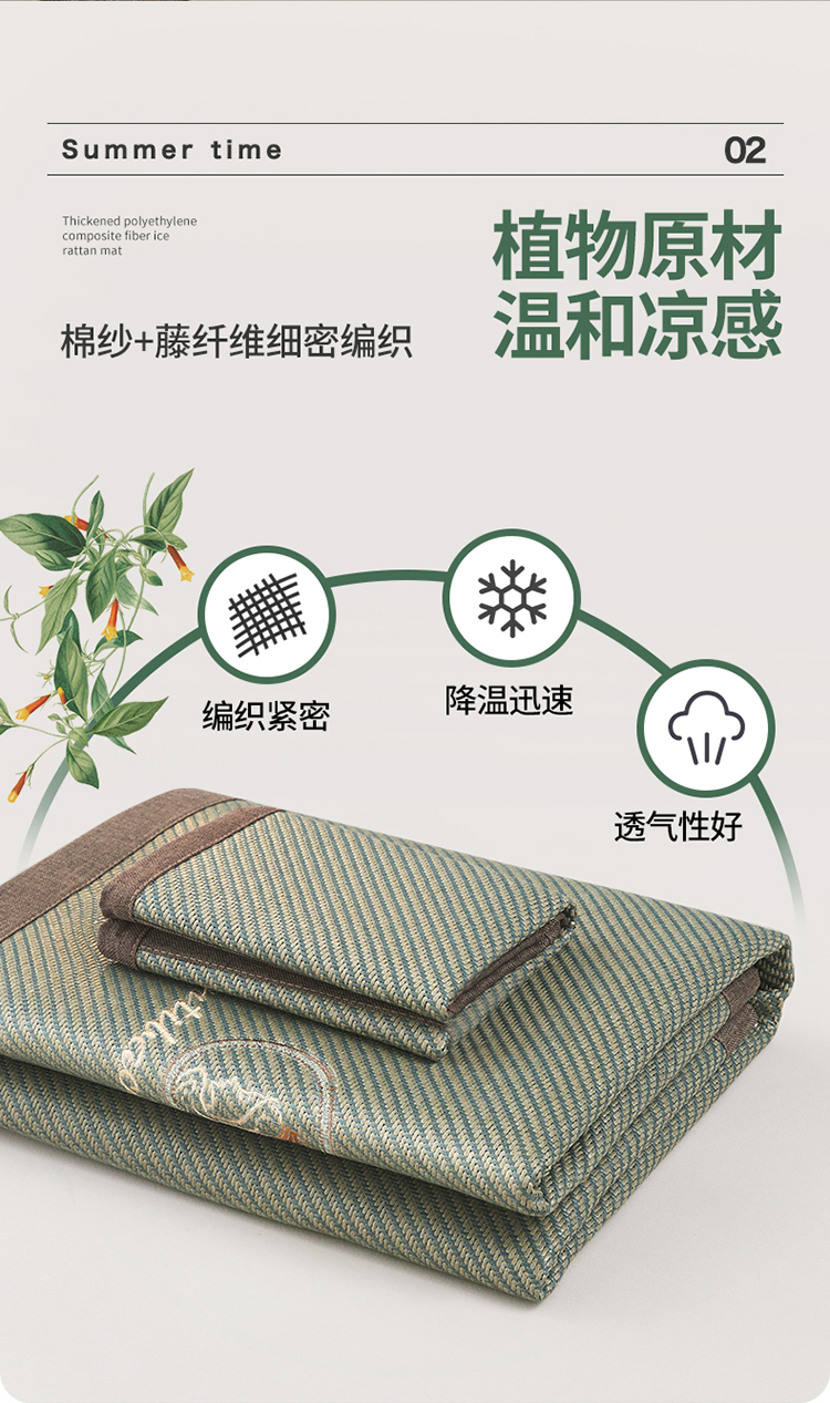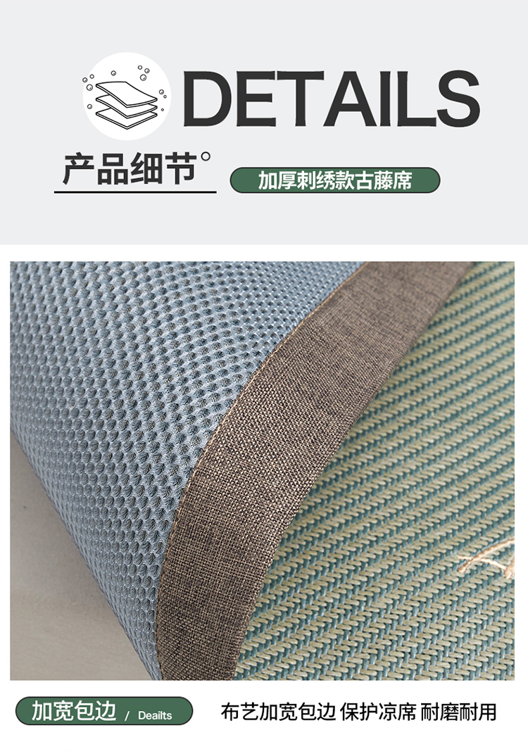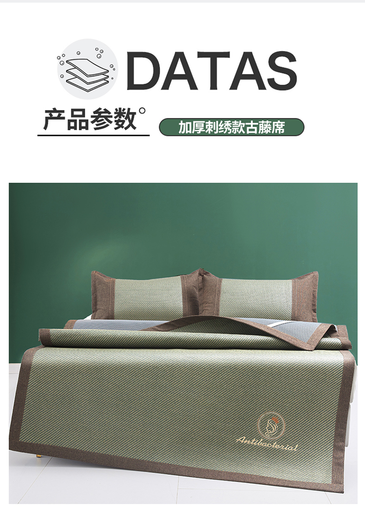 商品名称:伊被源 2023新款加厚刺绣古藤席三件套-可可西里 可可西里-绿
