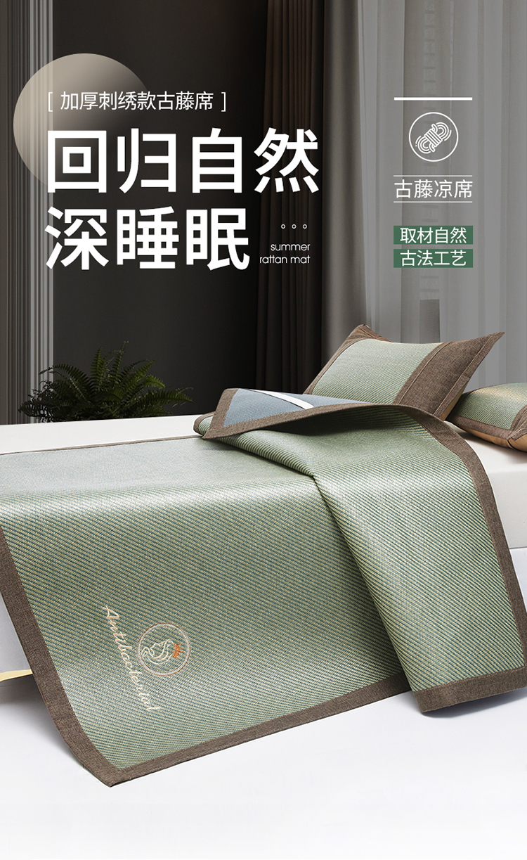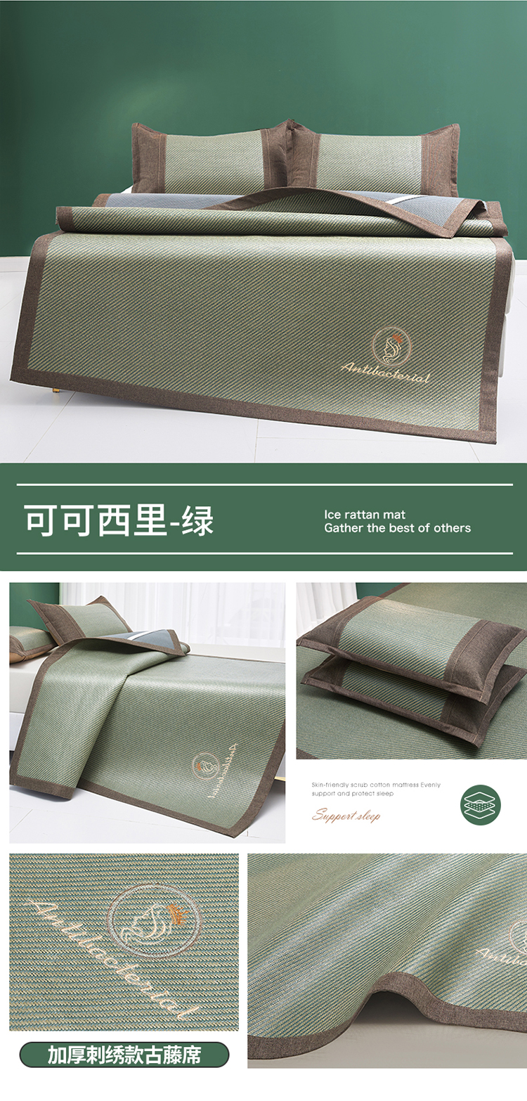 伊被源 2023新款加厚刺绣古藤席三件套-可可西里 可可西里-绿