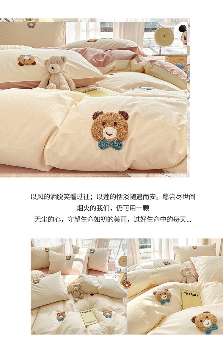 当前位置: 91家纺网 > 商品网购 > 床品套件 > 四件套 > 水洗棉四件套 > 锦觅 2024新款都市小清新ins全棉纯棉水洗棉毛巾绣四件套 熊先生