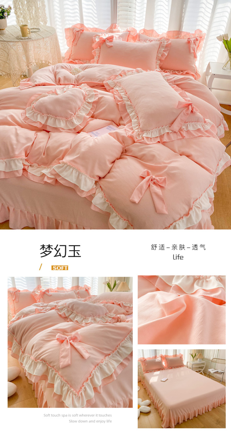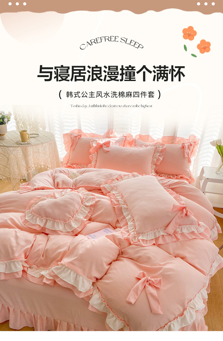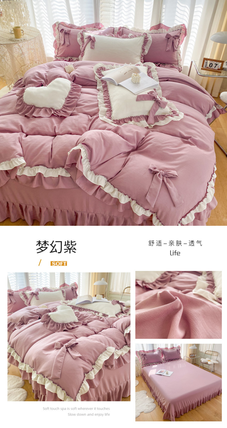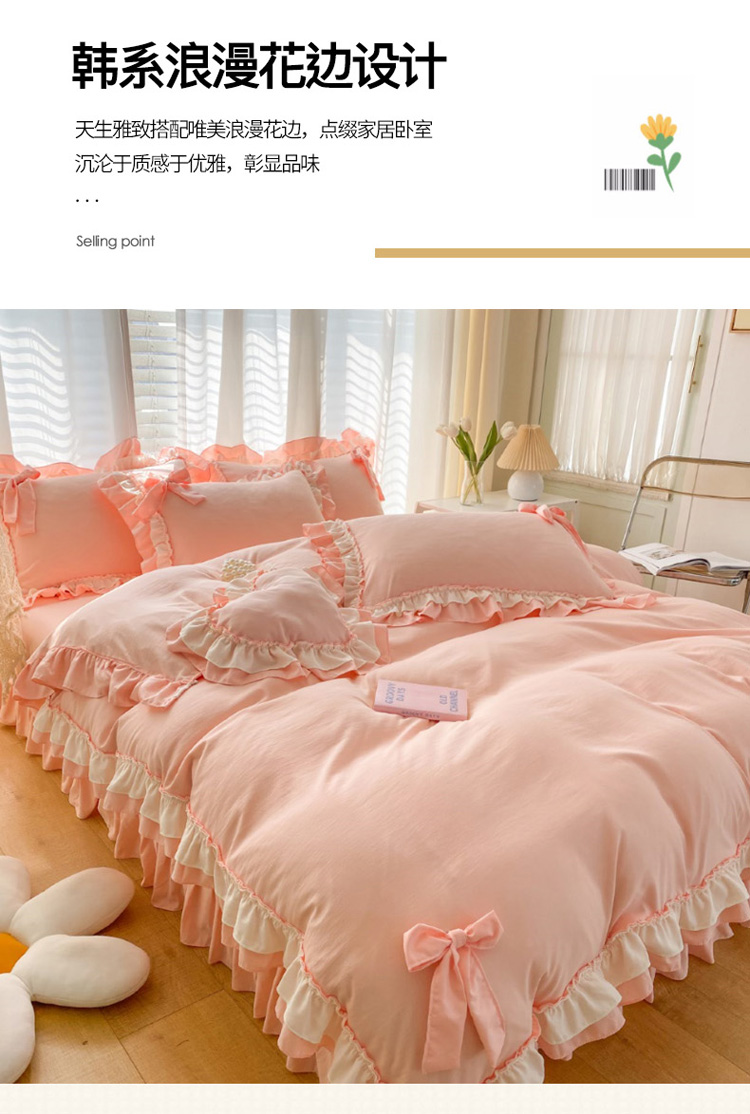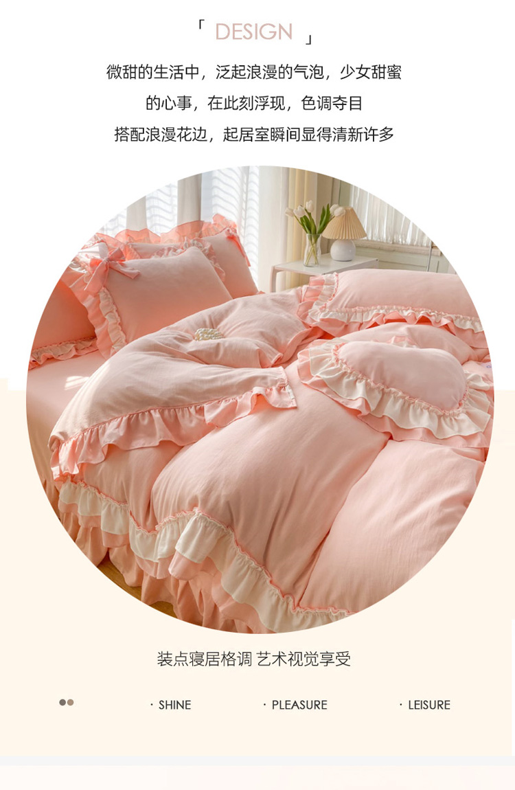 (总)唐人居 2026新款水洗棉花边床盖四件套-花影系列,花影-浅紫,花影-豆沙,花影-玫红,花影-暖橘,花影-苹果绿,花影-浅粉,花影-浅灰