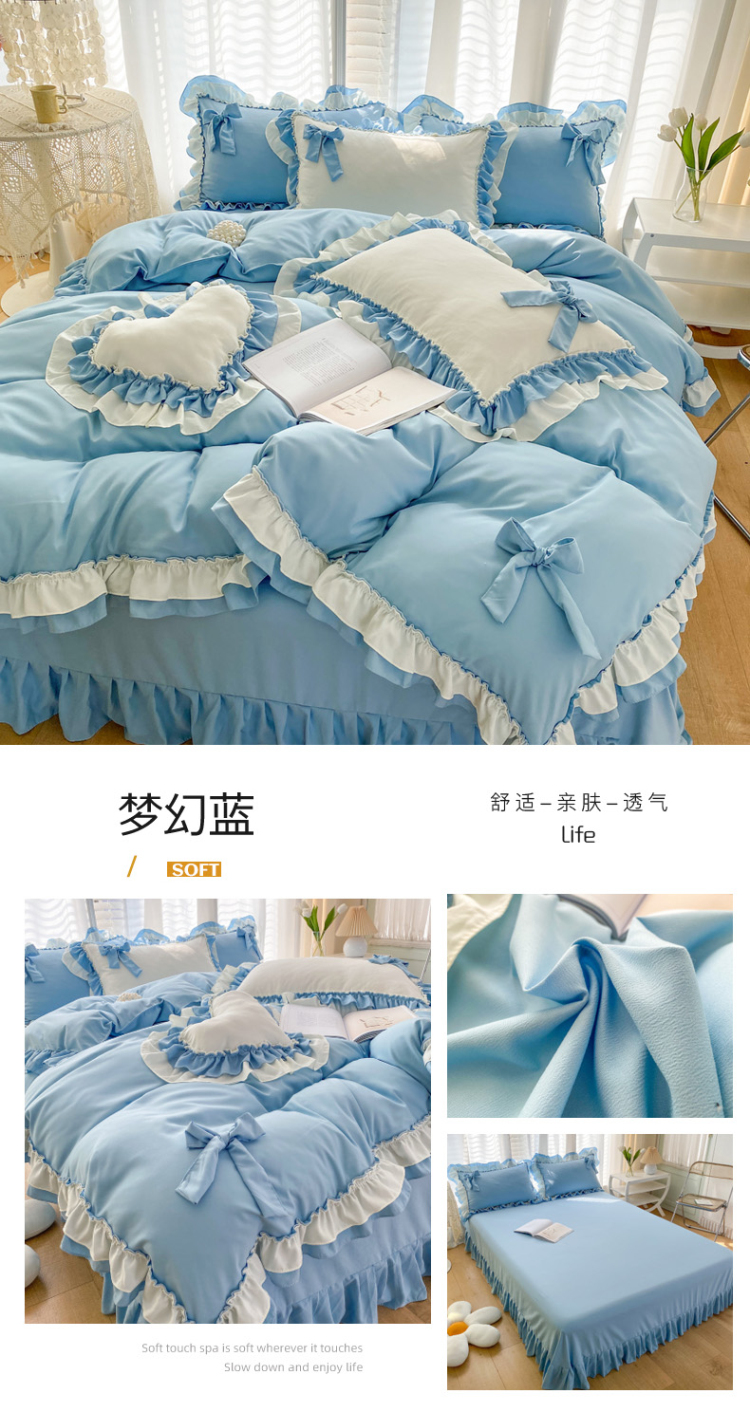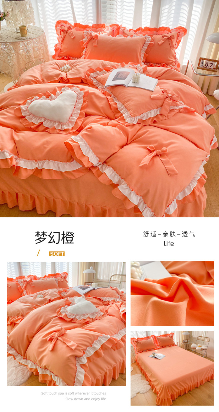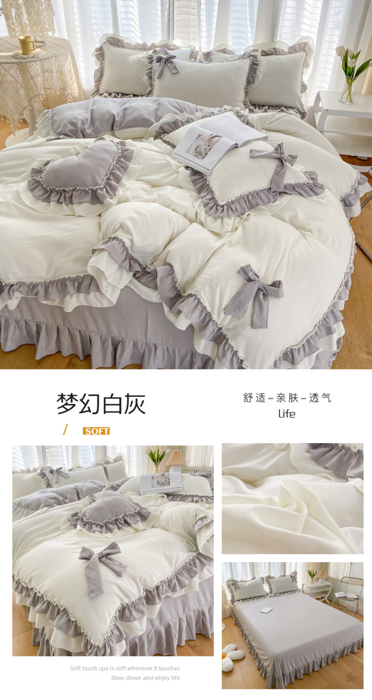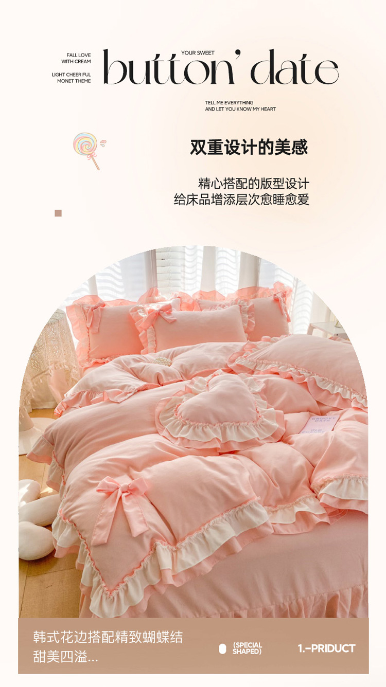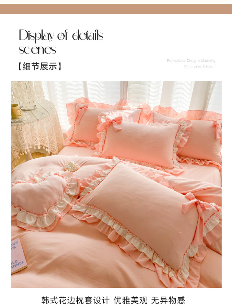 (总)唐人居 2026新款水洗棉花边床盖四件套-花影系列,花影-浅紫,花影-豆沙,花影-玫红,花影-暖橘,花影-苹果绿,花影-浅粉,花影-浅灰