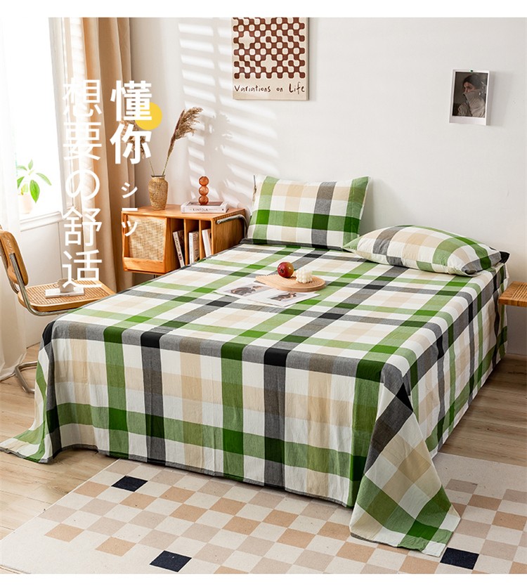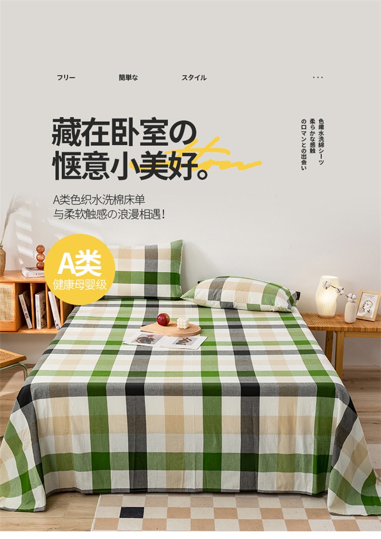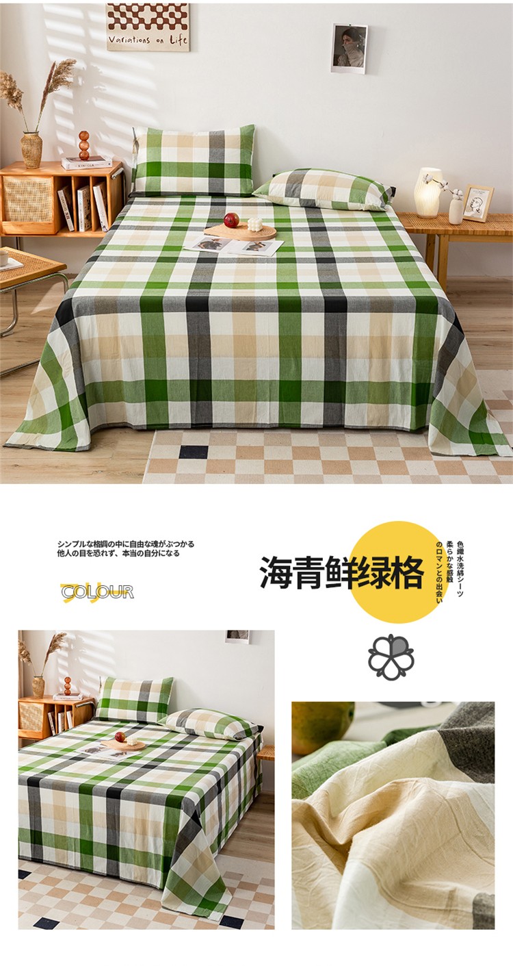 九沐良品 新款A类色织水洗棉床单 海青鲜绿格