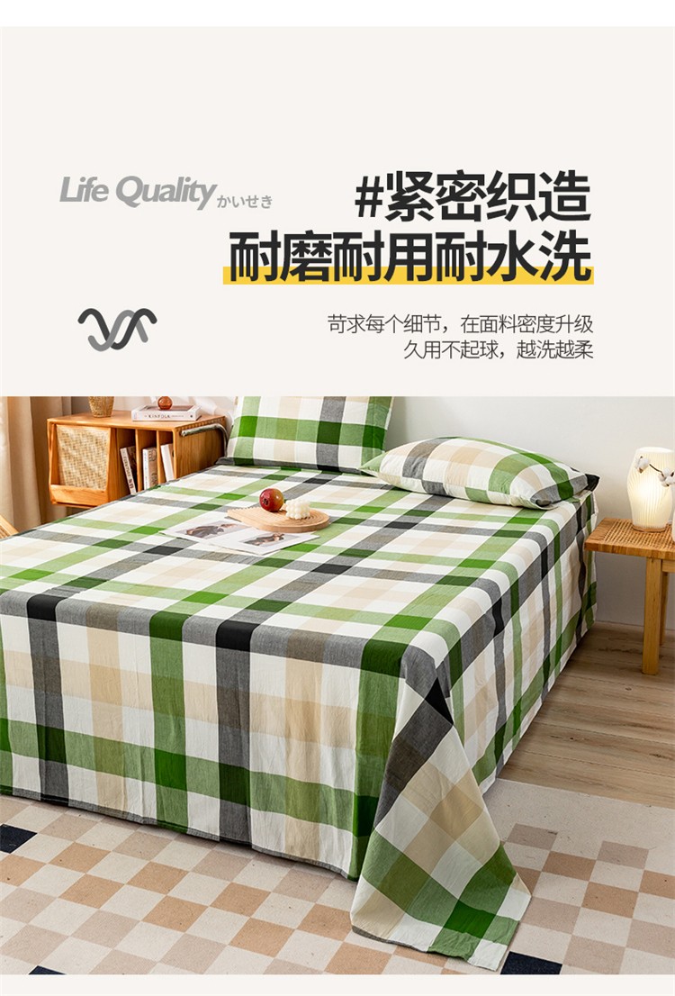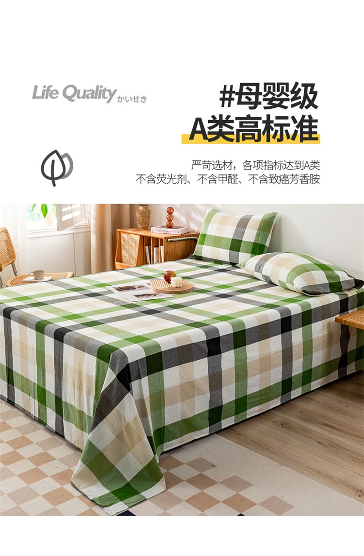 商品名称:九沐良品 新款A类色织水洗棉床单 海青鲜绿格