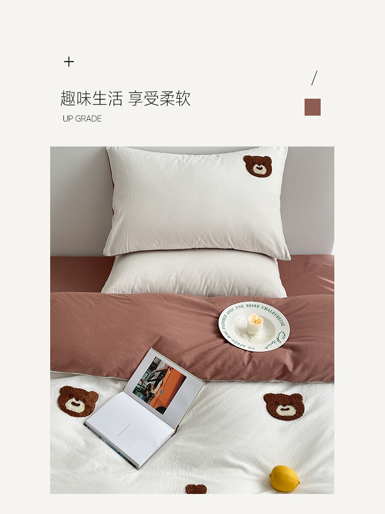 商品名称:雅居纺 2023新款全棉毛巾绣四件套 开心熊