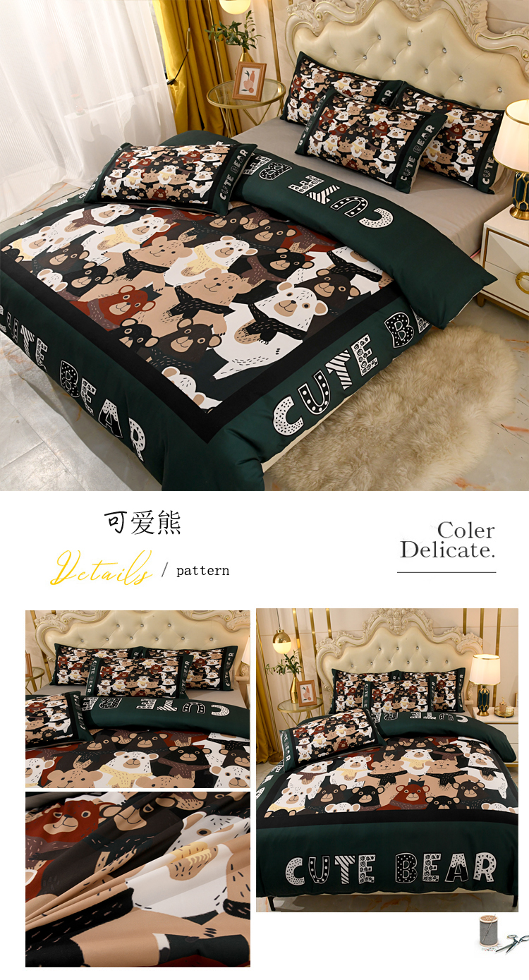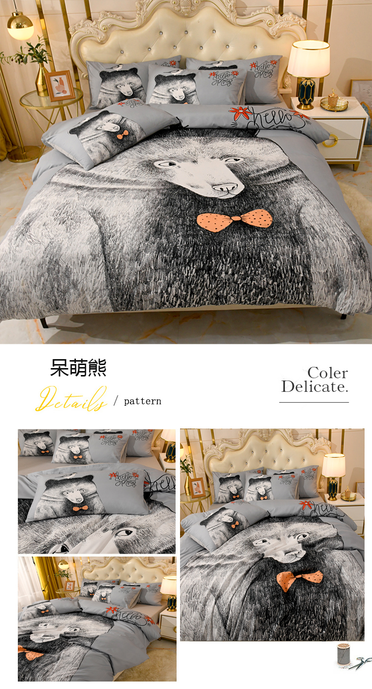 (总)爵仕 2023新款卡通暴力熊系列真丝四件套,粉熊,黑头熊,黄熊,灰熊,机械熊【有小号】,蓝熊,迷彩熊,小白兔,小黑熊【有小号】,游戏仔