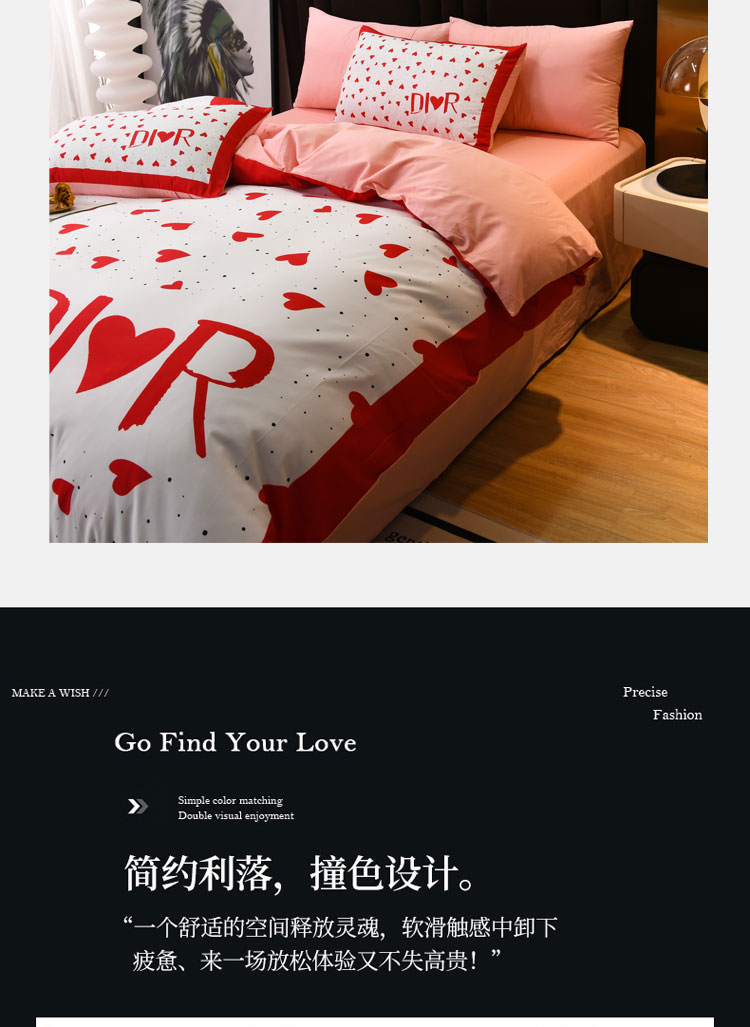 (总)爵仕 2023新款直播供货轻奢简约风全棉四件套,D家黑,D家蓝,PIG,豹纹白,彩虹白,彩虹粉,呆萌熊,格子熊,宫廷马,花卉,可爱熊,满天星白,骑士,千鸟格白,千鸟格黑,手绘公主,向日葵,樱花粉,艾玛,爱心,爱心兔,迪赛,格林,花园,罗林卡,森林红,森林蓝