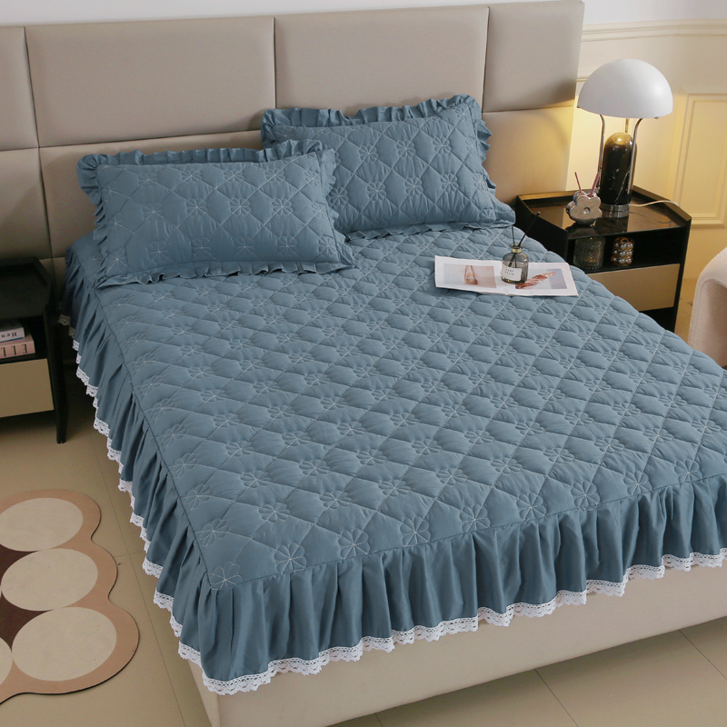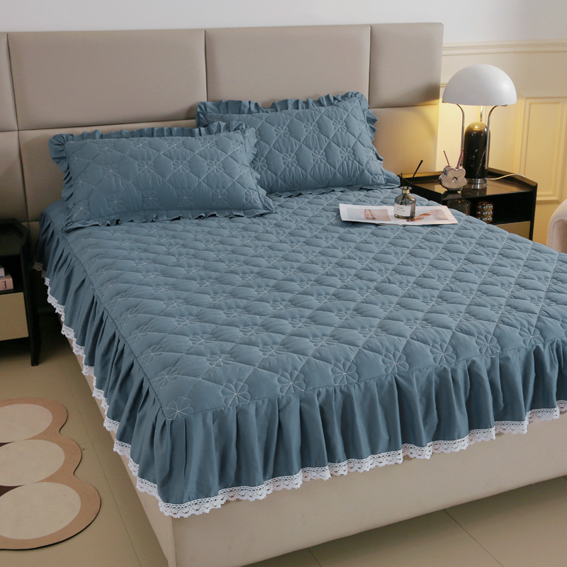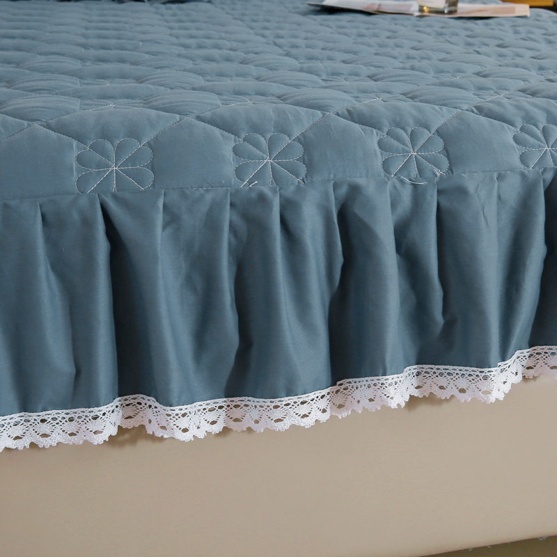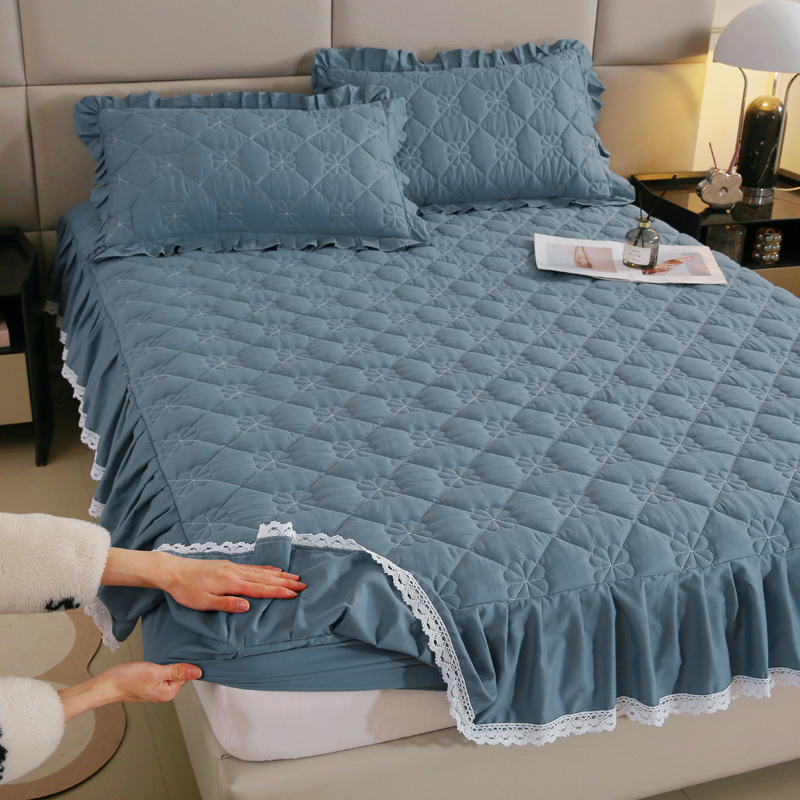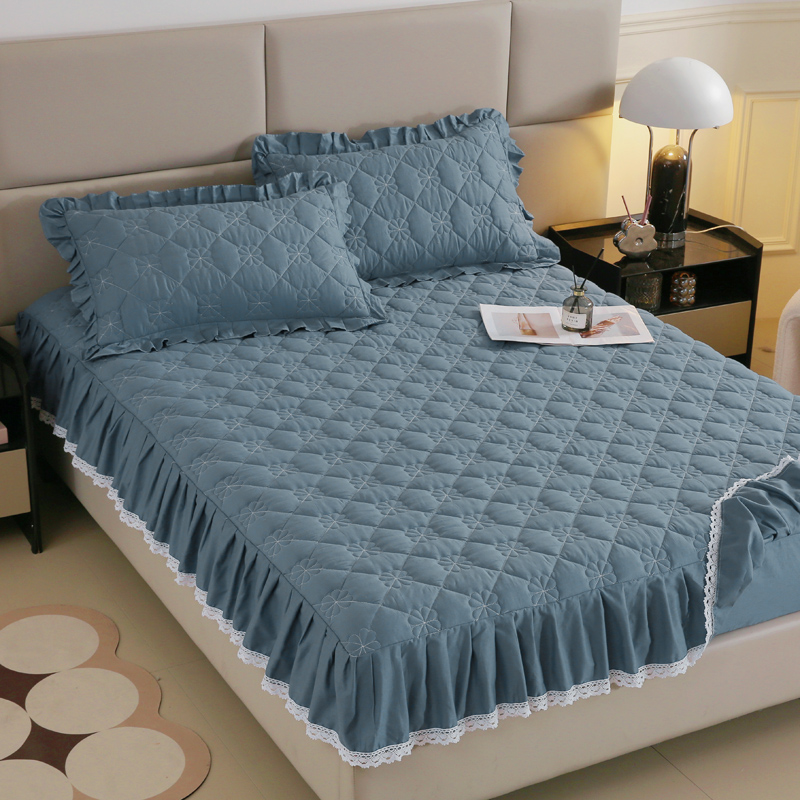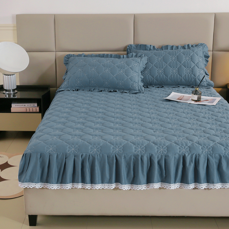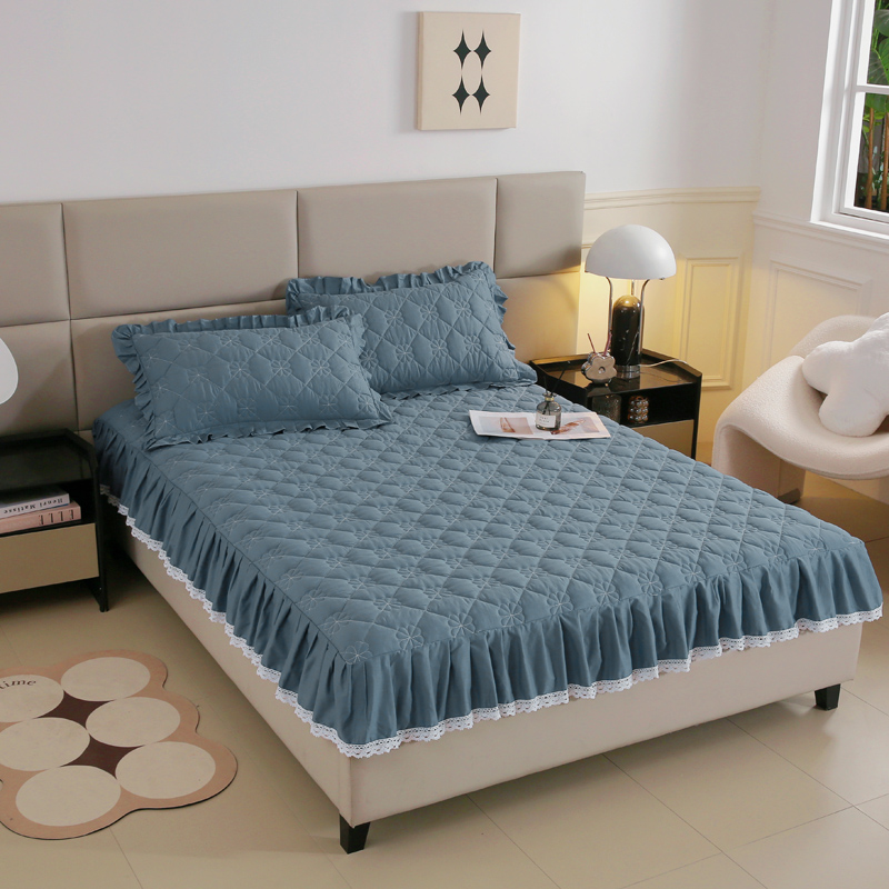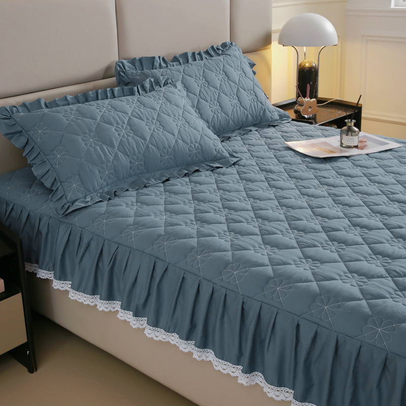 情煊家纺2023新款全棉夹棉纯色花边床笠 灰蓝