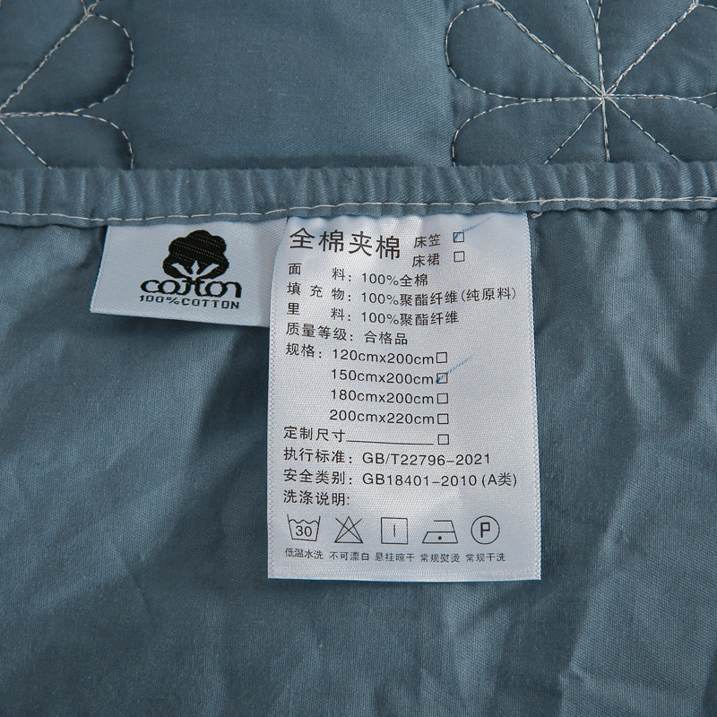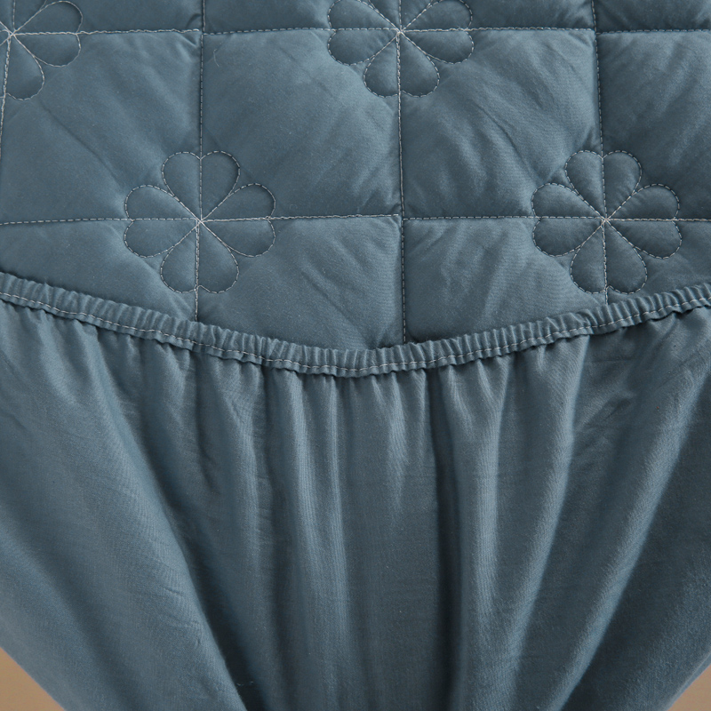 • 91家纺网 家纺一手货源 找家纺 情煊家纺2023新款全棉夹棉纯色花边床笠 灰蓝