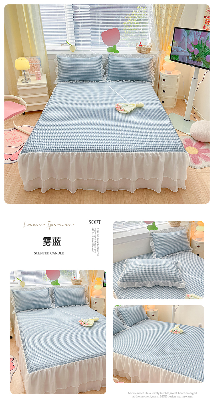 商品名称:同田 2023新款凉豆豆床裙款凉席冰丝凉感豆豆席 雾蓝