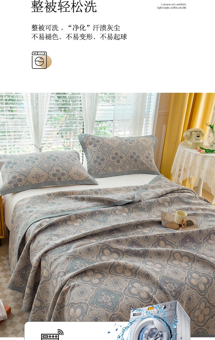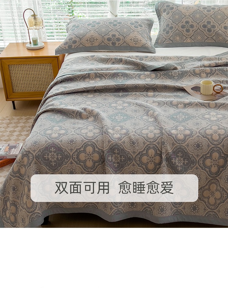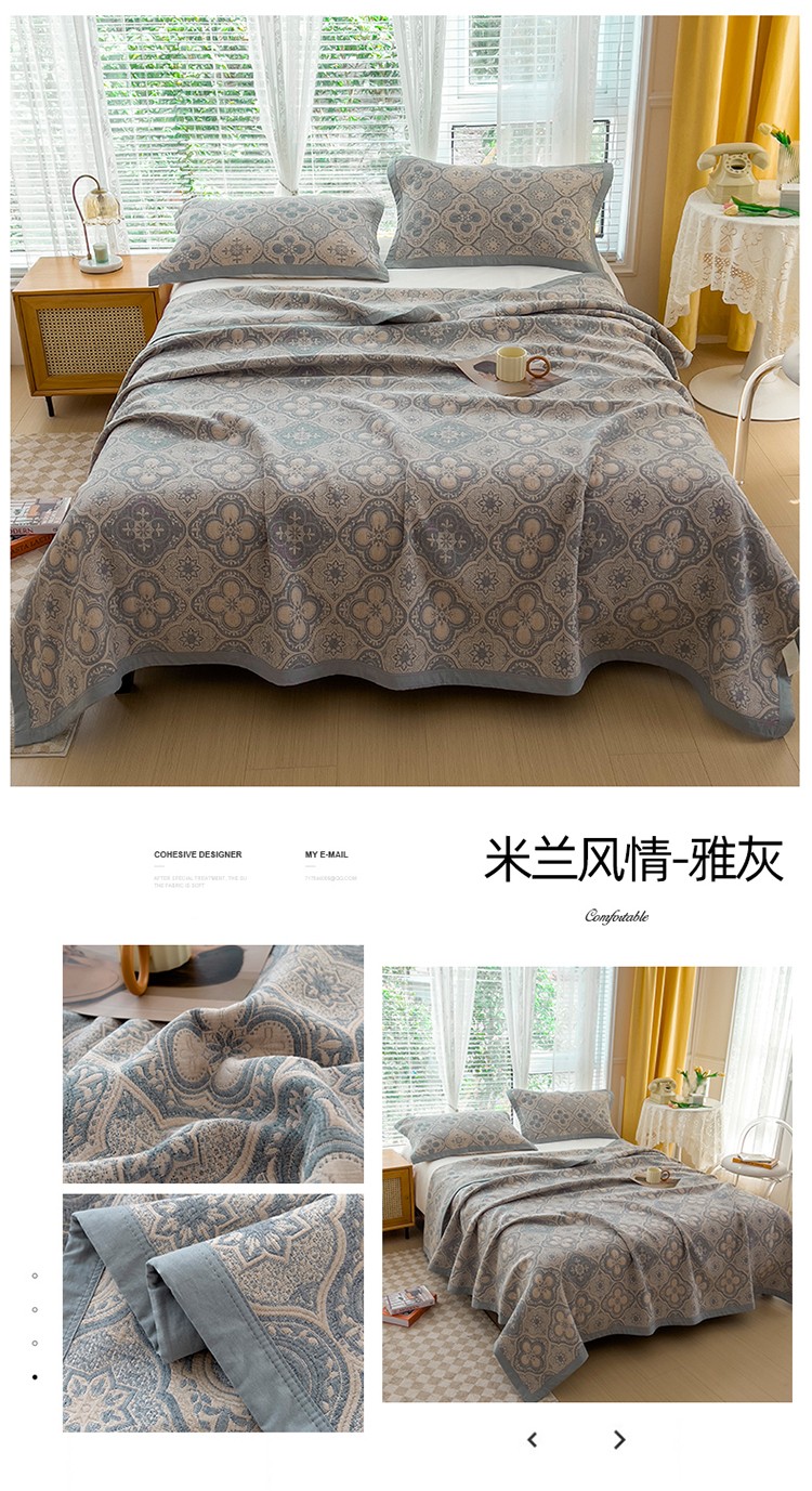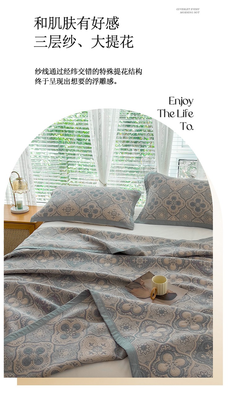 • 91家纺网 家纺一手货源 找家纺 棠薇 2023新款包边款三层细纱毛巾被 米兰风情 雅灰