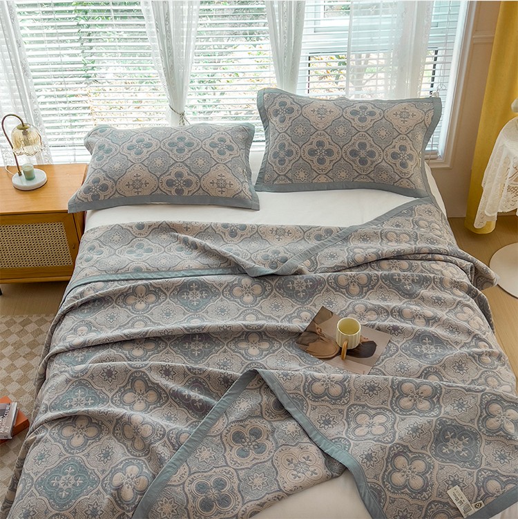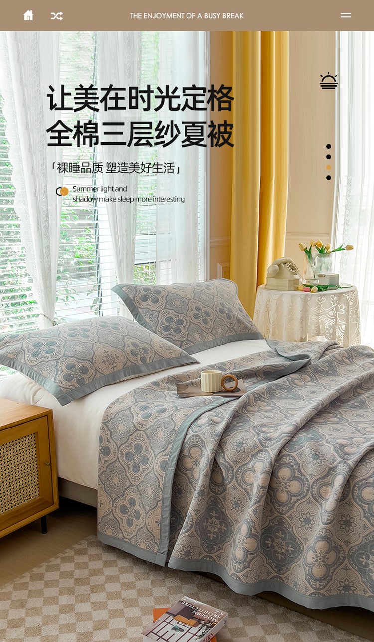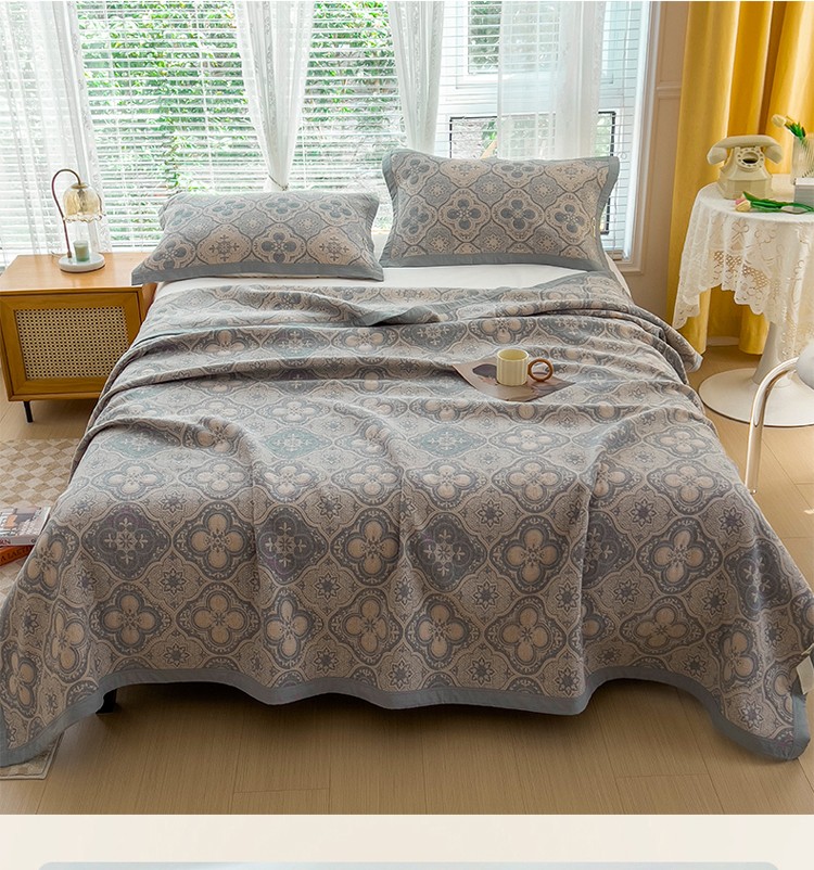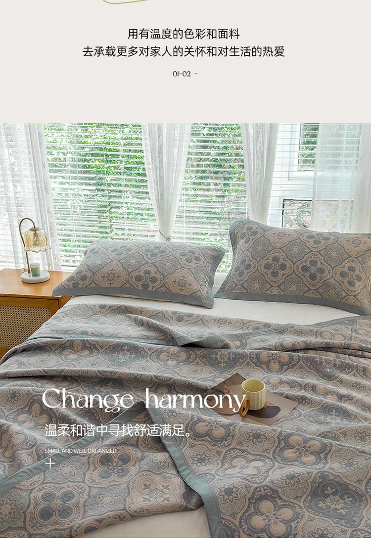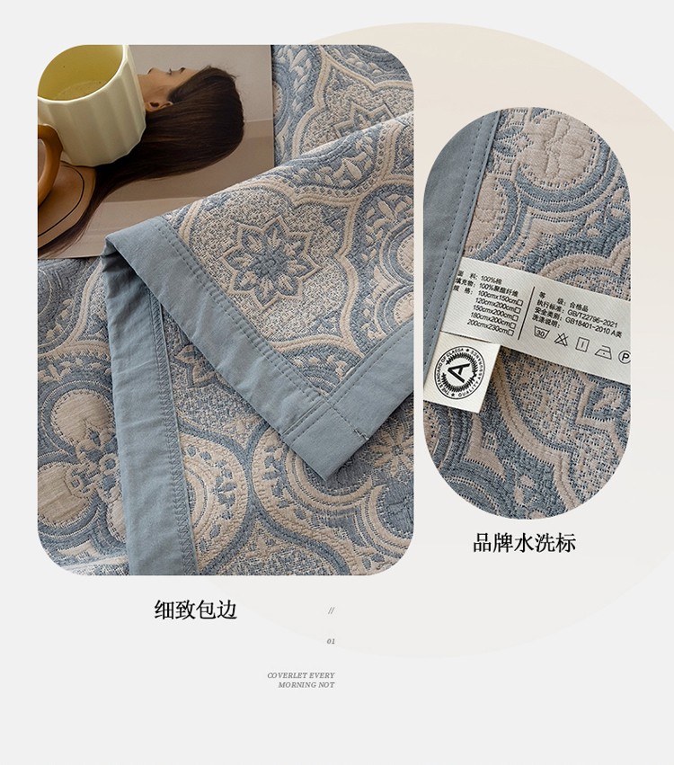 • 91家纺网 家纺一手货源 找家纺 棠薇 2023新款包边款三层细纱毛巾被 米兰风情 雅灰