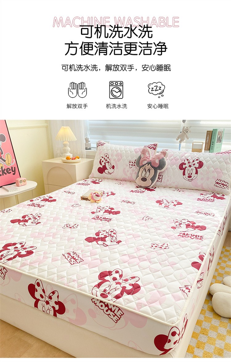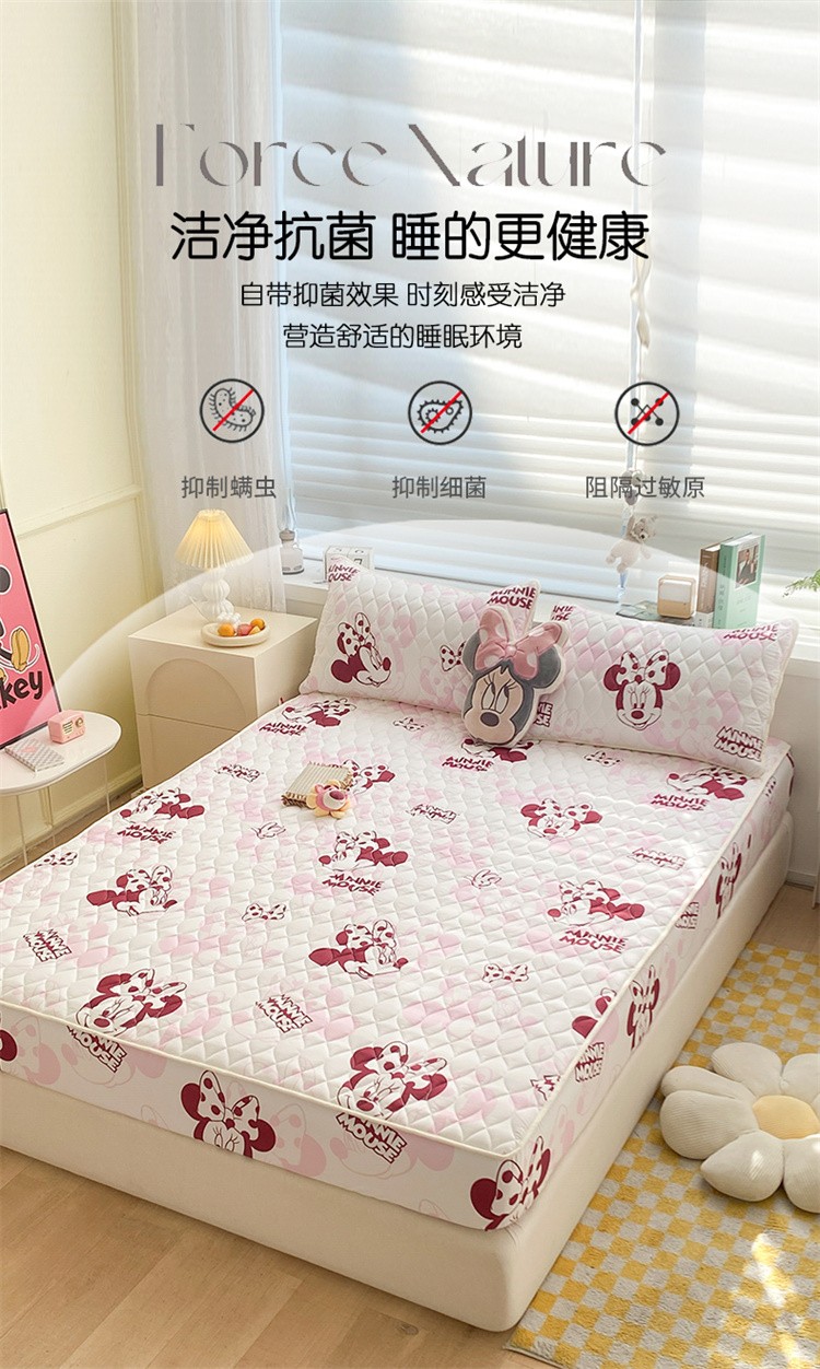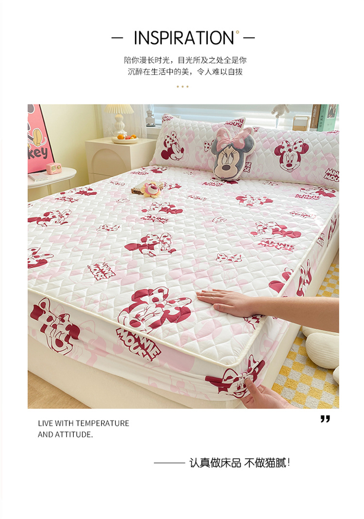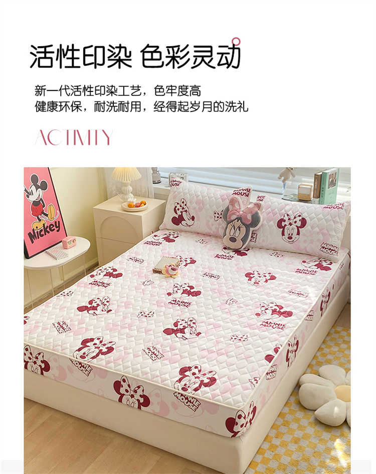 • 91家纺网 家纺一手货源 找家纺 鑫钰 2023新款迪士尼印花夹棉床笠 开心米妮 红