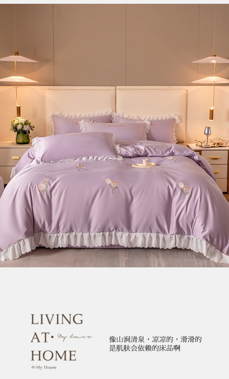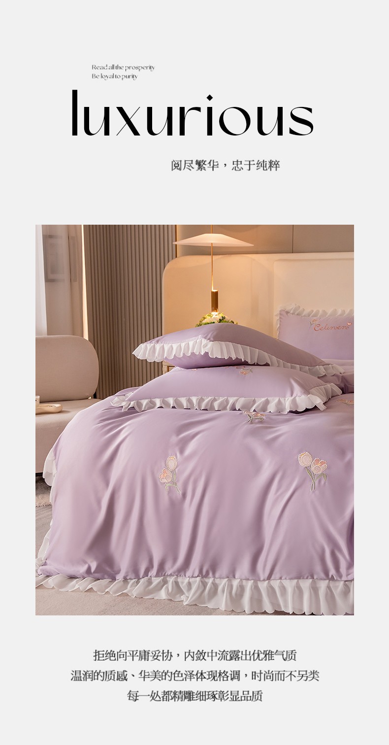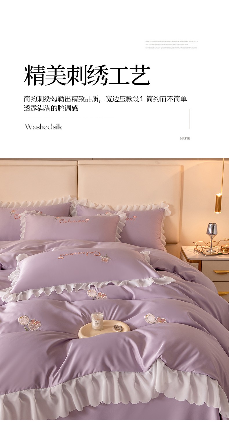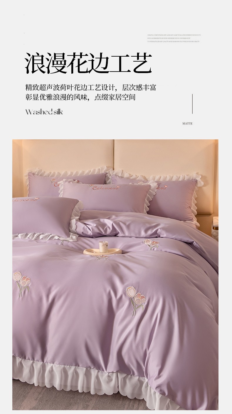 菲儿家纺 2023新款郁金香系列水洗真丝刺绣四件套 郁金香-紫