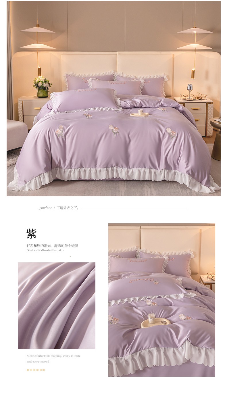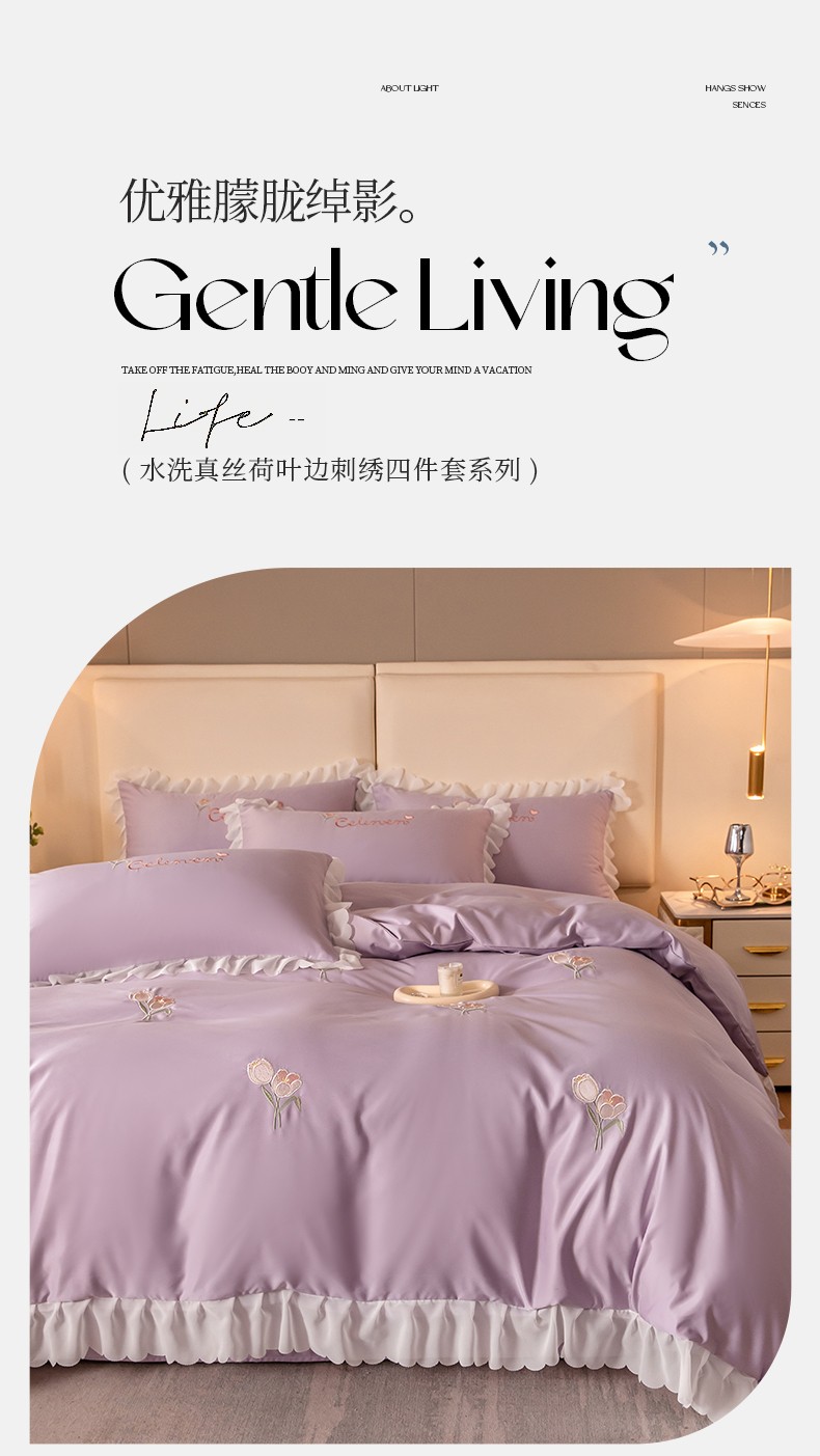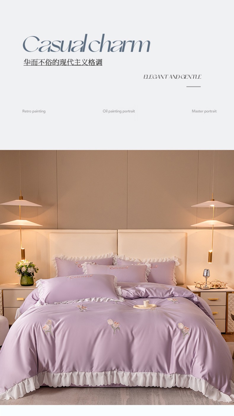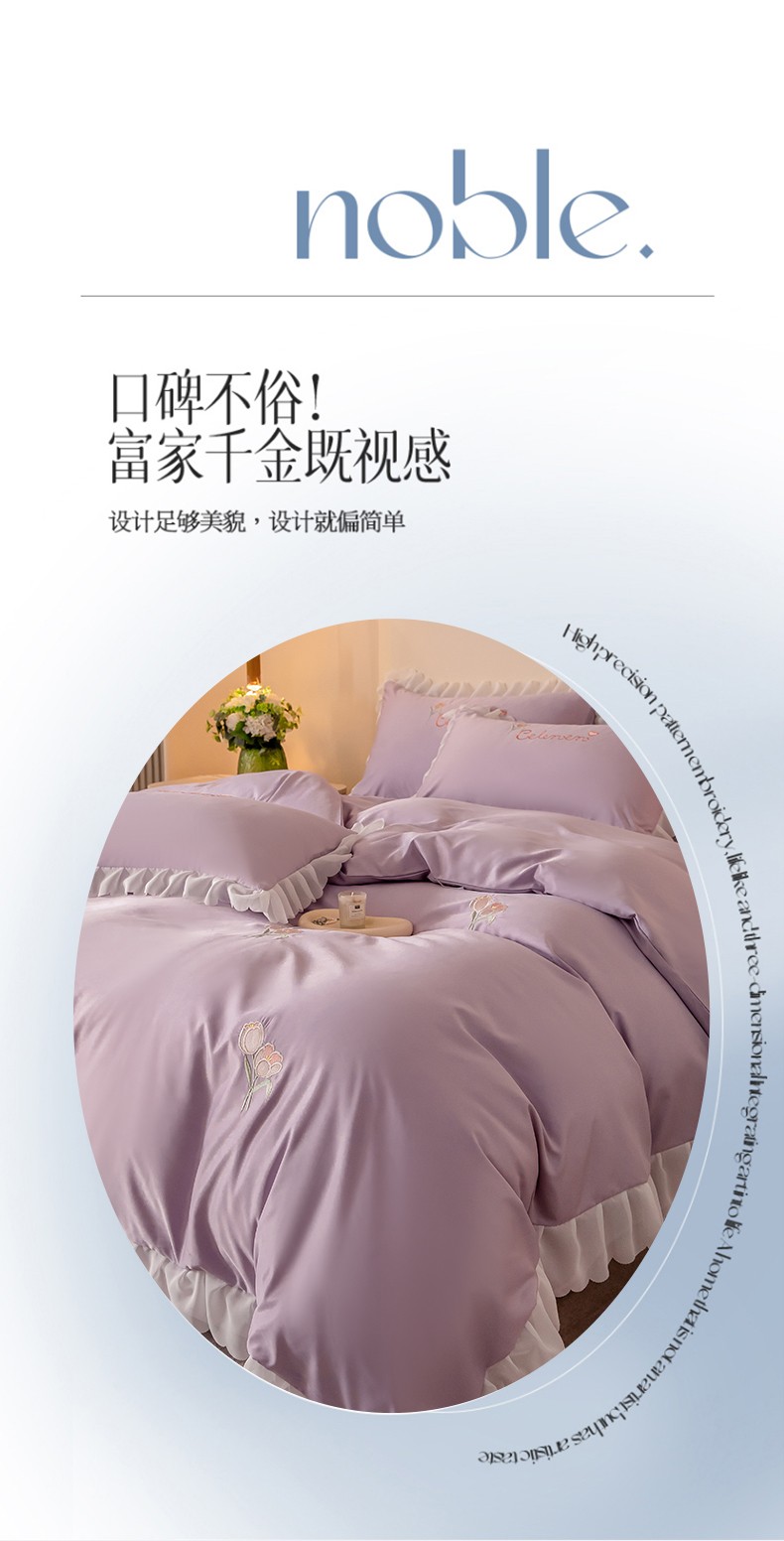 菲儿家纺 2023新款郁金香系列水洗真丝刺绣四件套 郁金香-紫