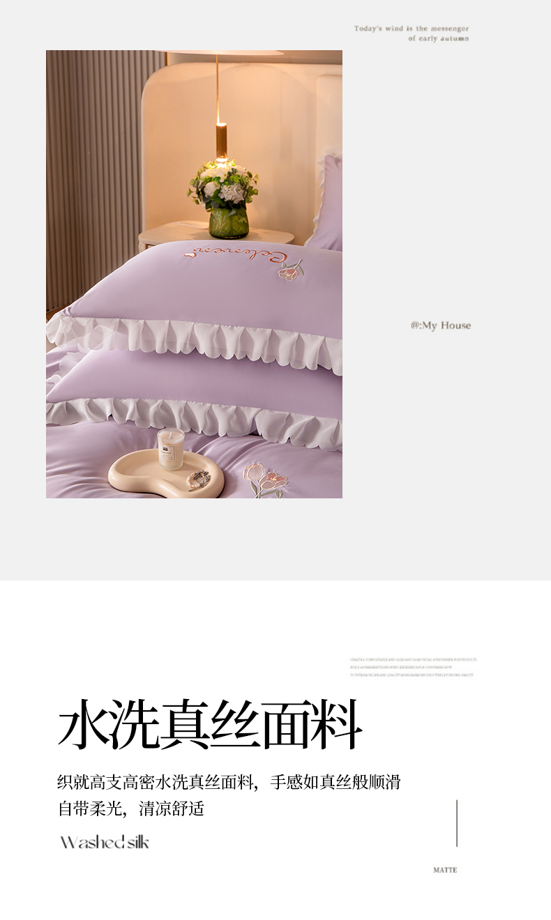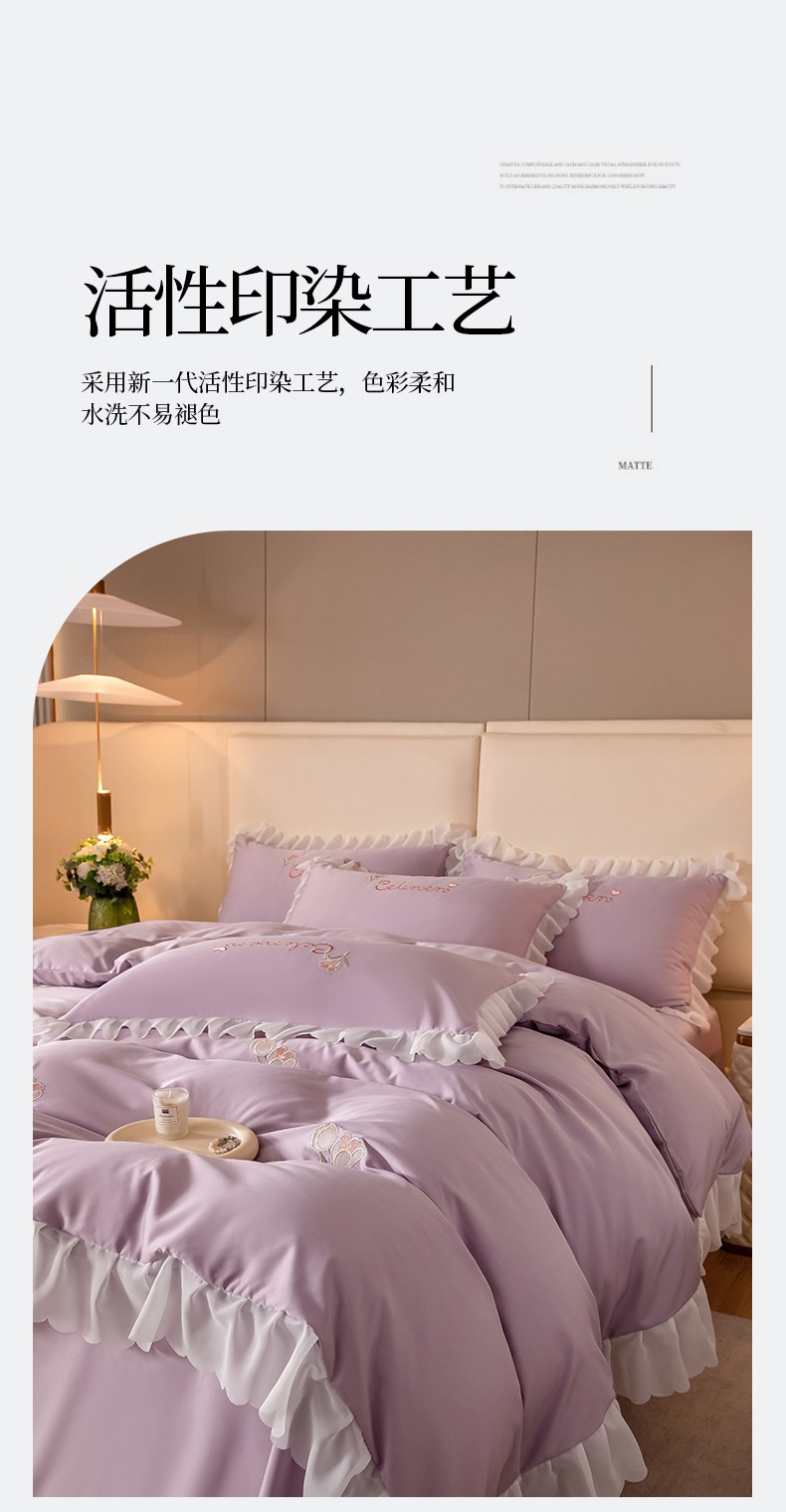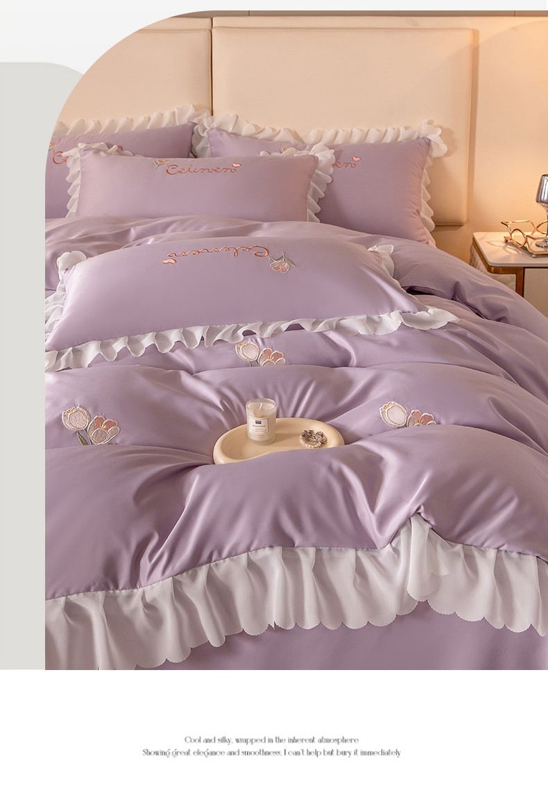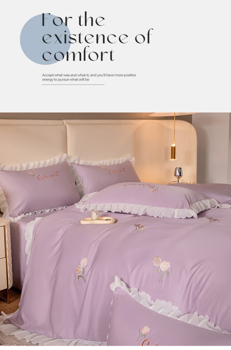 菲儿家纺 2023新款郁金香系列水洗真丝刺绣四件套 郁金香-紫