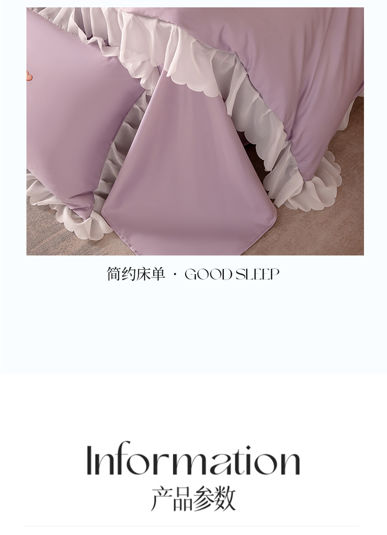 (总)菲儿家纺 2023新款直播高克重纯色牛奶绒平绣花边四件套-黛茜,黛茜-粉,黛茜-黄,黛茜-蓝,黛茜-绿,黛茜-紫