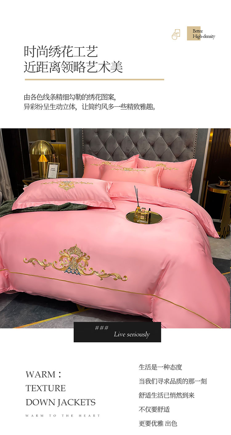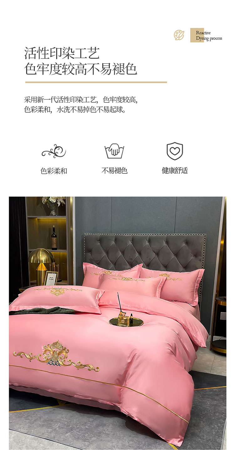 慕她婚庆四件套大红色结婚全棉纯棉刺绣花多件套直播 皇家风范粉玉