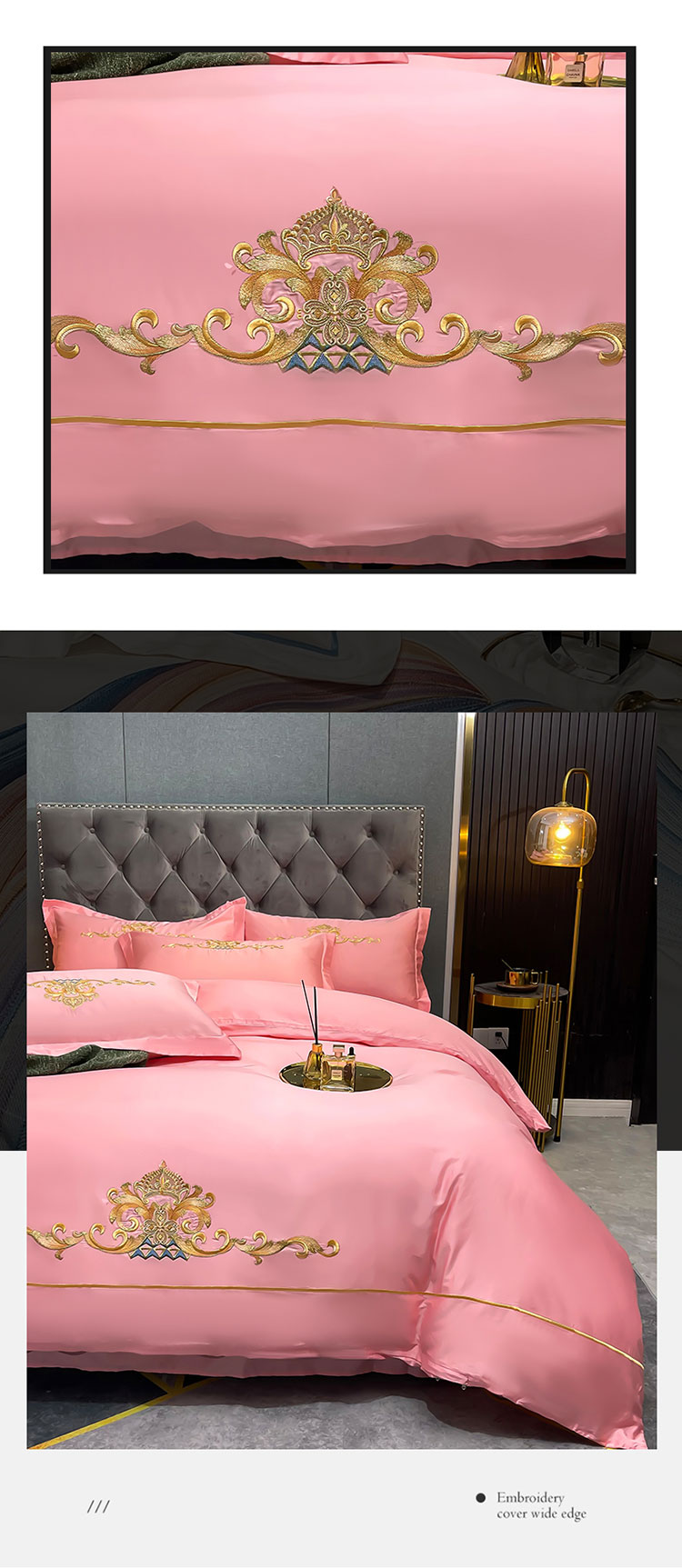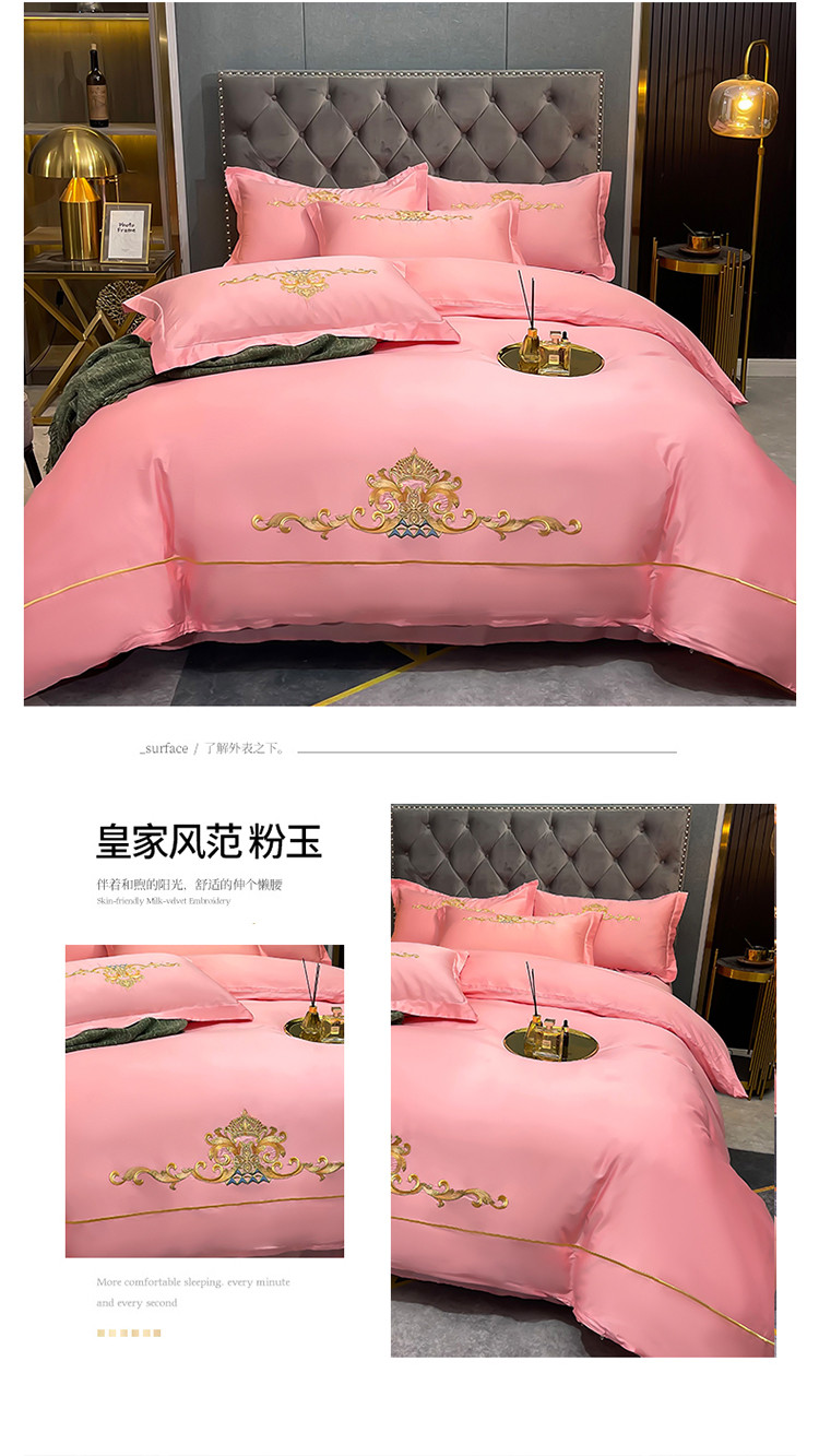 商品名称:慕她婚庆四件套大红色结婚全棉纯棉刺绣花多件套直播 皇家风范粉玉