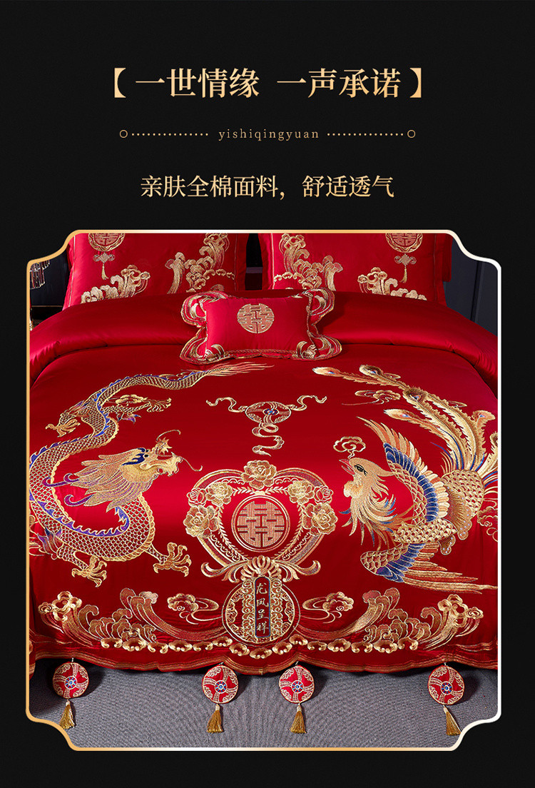(总)慕她 202560S长绒棉刺绣婚庆四件套-龙凤良缘,龙凤良缘