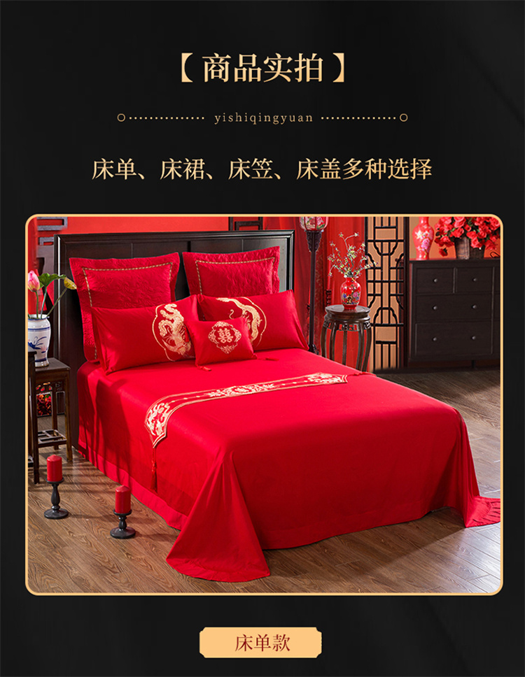 (总)慕她家纺 2025新款全棉纯棉婚庆四件套大红色刺绣多件套,百子贺喜,好运吉祥,吉祥龙凤,名门龙凤,天生一对,执手龙凤,至尊龙凤,子孙满堂