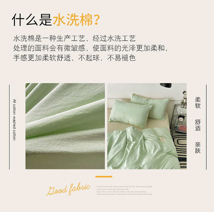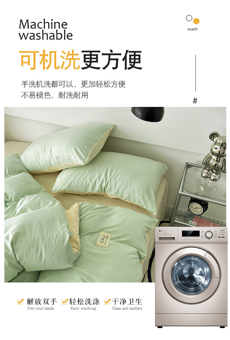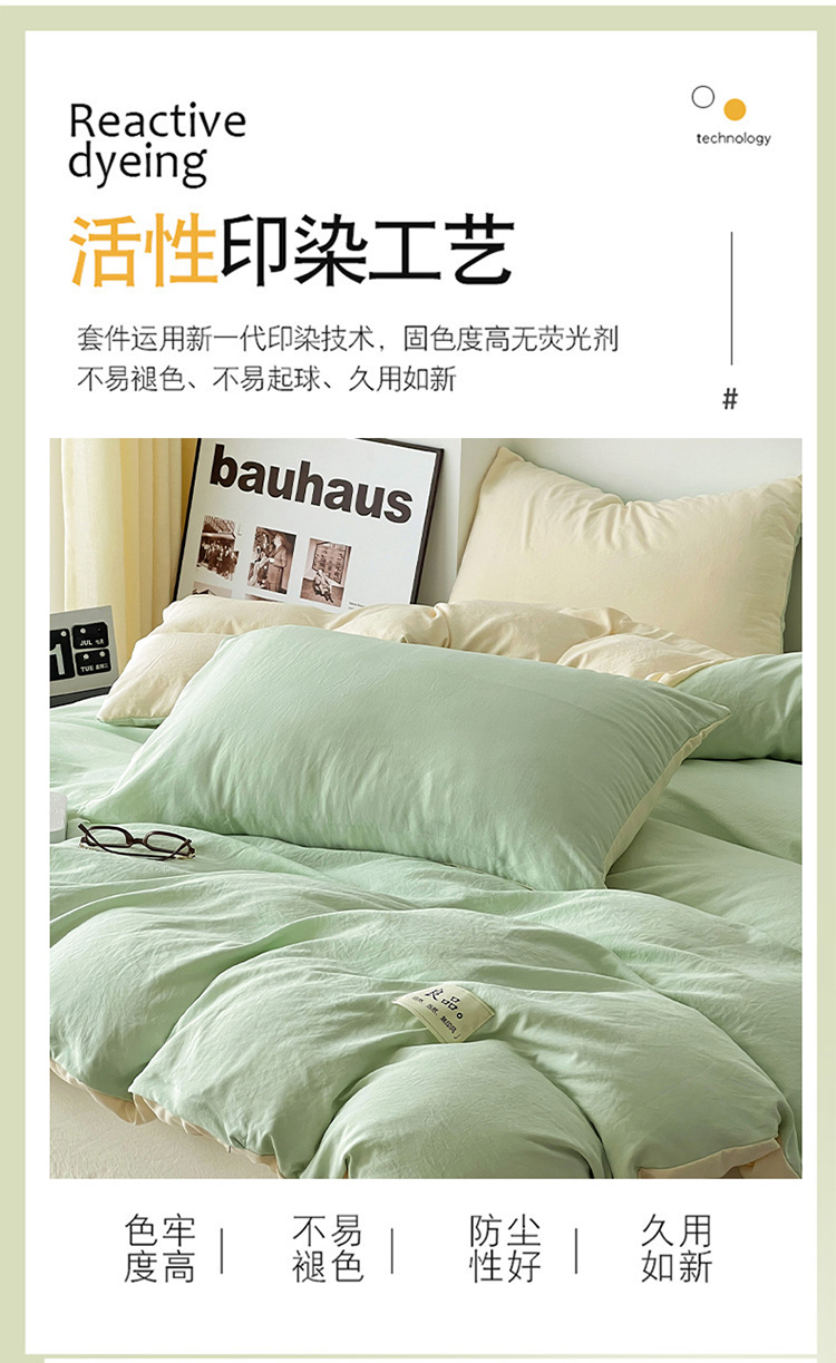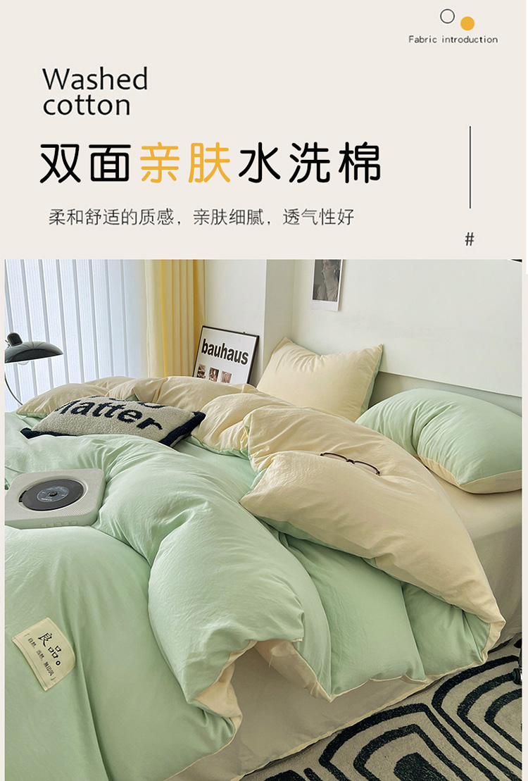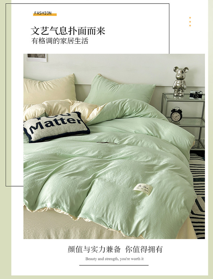 当前位置: 91家纺网 > 商品网购 > 床品套件 > 四件套 > 化纤普通四件套 > 优色良品家纺 2023新款博主风90克超柔水洗棉双拼四件套 藻绿+米黄