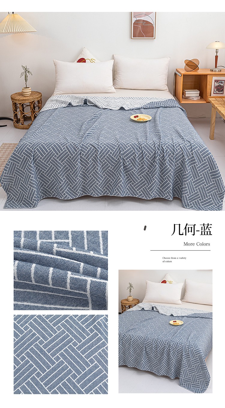 商品名称:卡奥 2024款花系全棉水洗三层纱毛巾被盖毯毛毯 几何-蓝