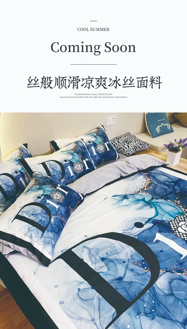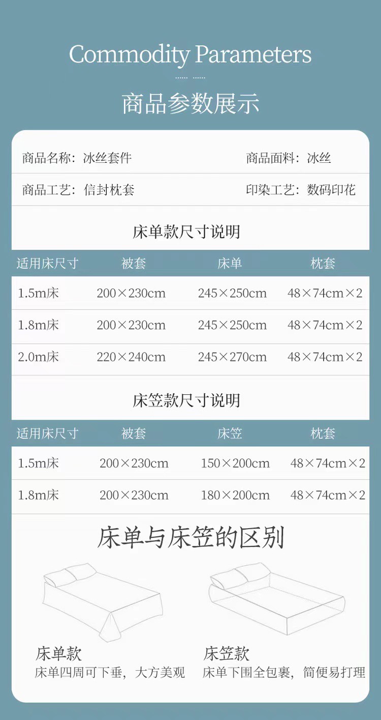 商品名称:2023春夏新款潮牌水洗真丝四件套夏季可以裸睡床单床笠款可以网销