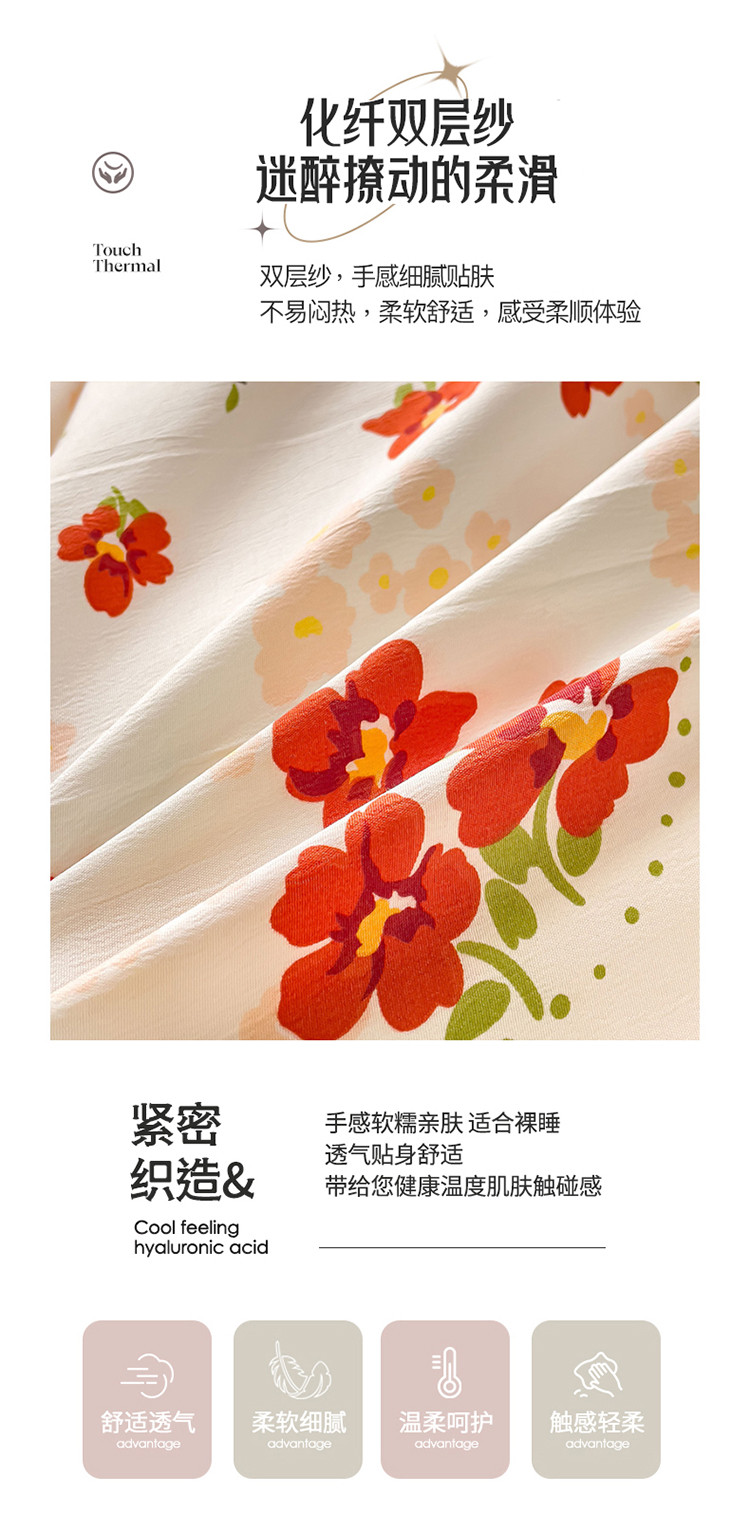 当前位置: 91家纺网 > 商品网购 > 床品套件 > 四件套 > 化纤普通四件套 > 米瑞娜 2024新款春夏105克双层纱水洗棉麻印花四件套 远晴-米