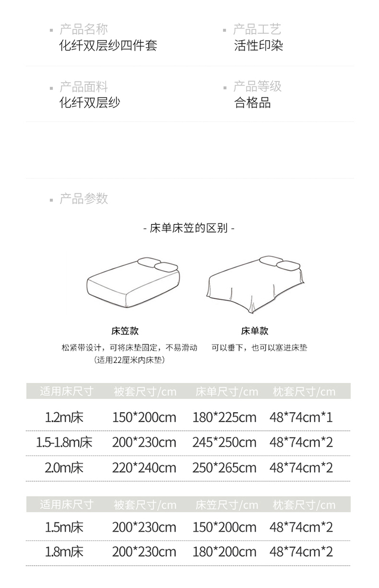 1.8m床笠款四件套(被套200*230) | ¥49.00 |