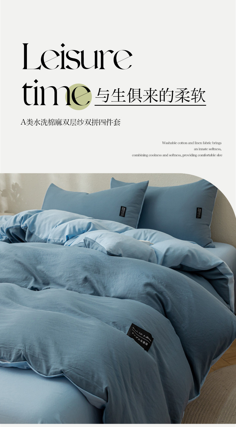 当前位置: 91家纺网 > 商品网购 > 床品套件 > 四件套 > 水洗棉四件套 > 米瑞娜 2024新款 水洗棉麻双拼纯色四件套 雾蓝+淡蓝