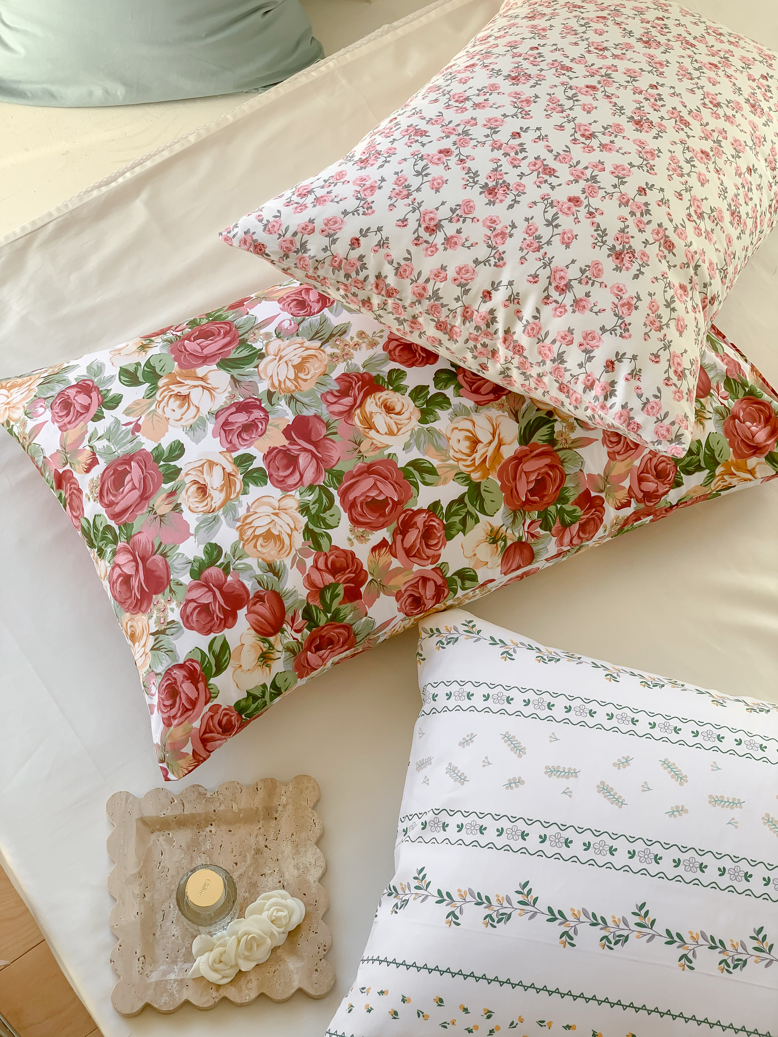 窝米 全棉斜纹枕套(花卉类) 小玫瑰枕套