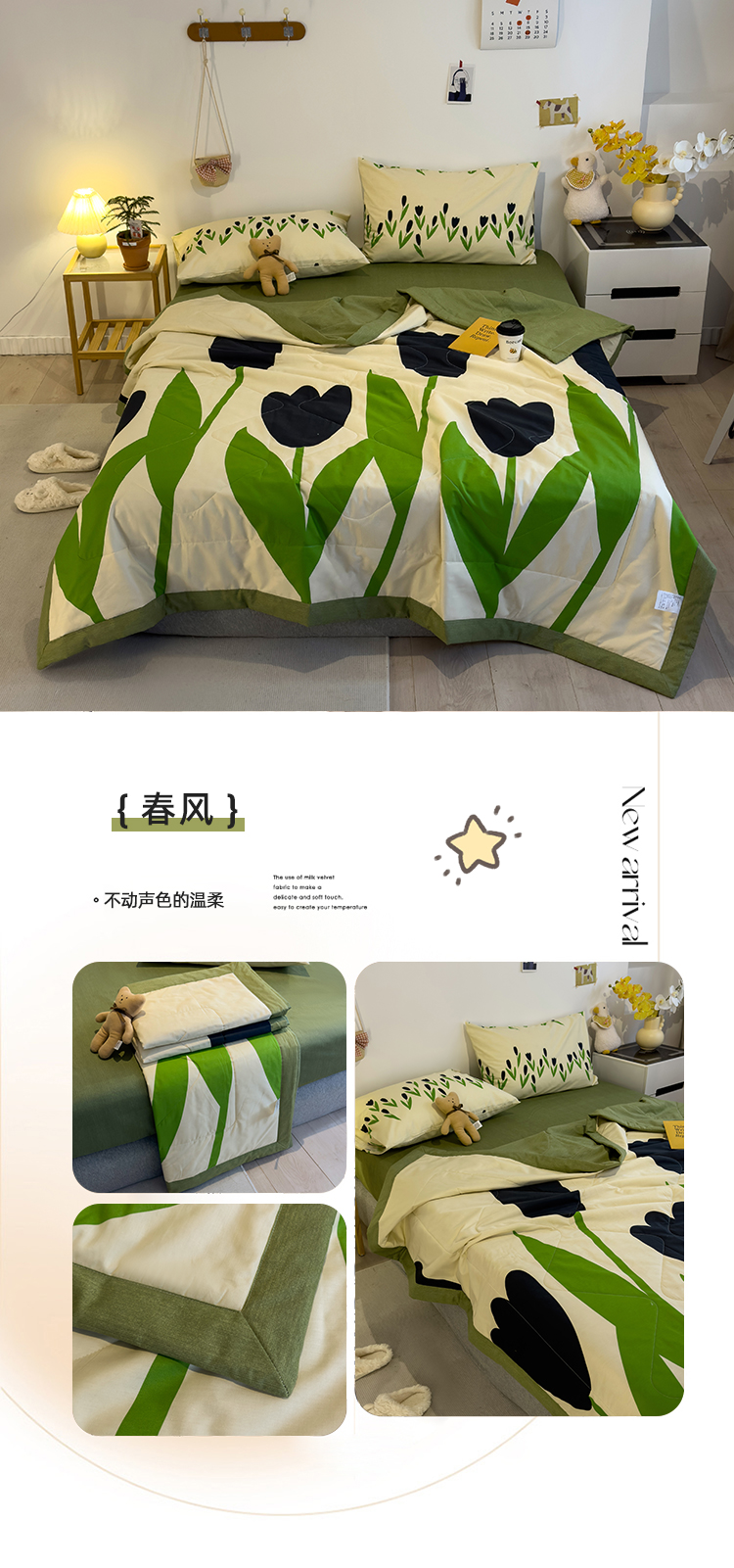 商品名称:怡家居 2023新款全棉小清新手包边夏被四件套 春风