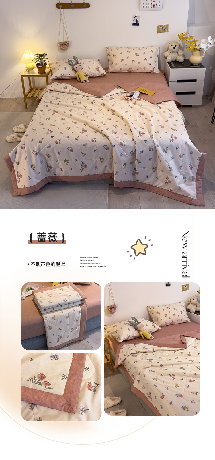商品名称:怡家居 2023新款全棉小清新手包边夏被四件套 蔷薇